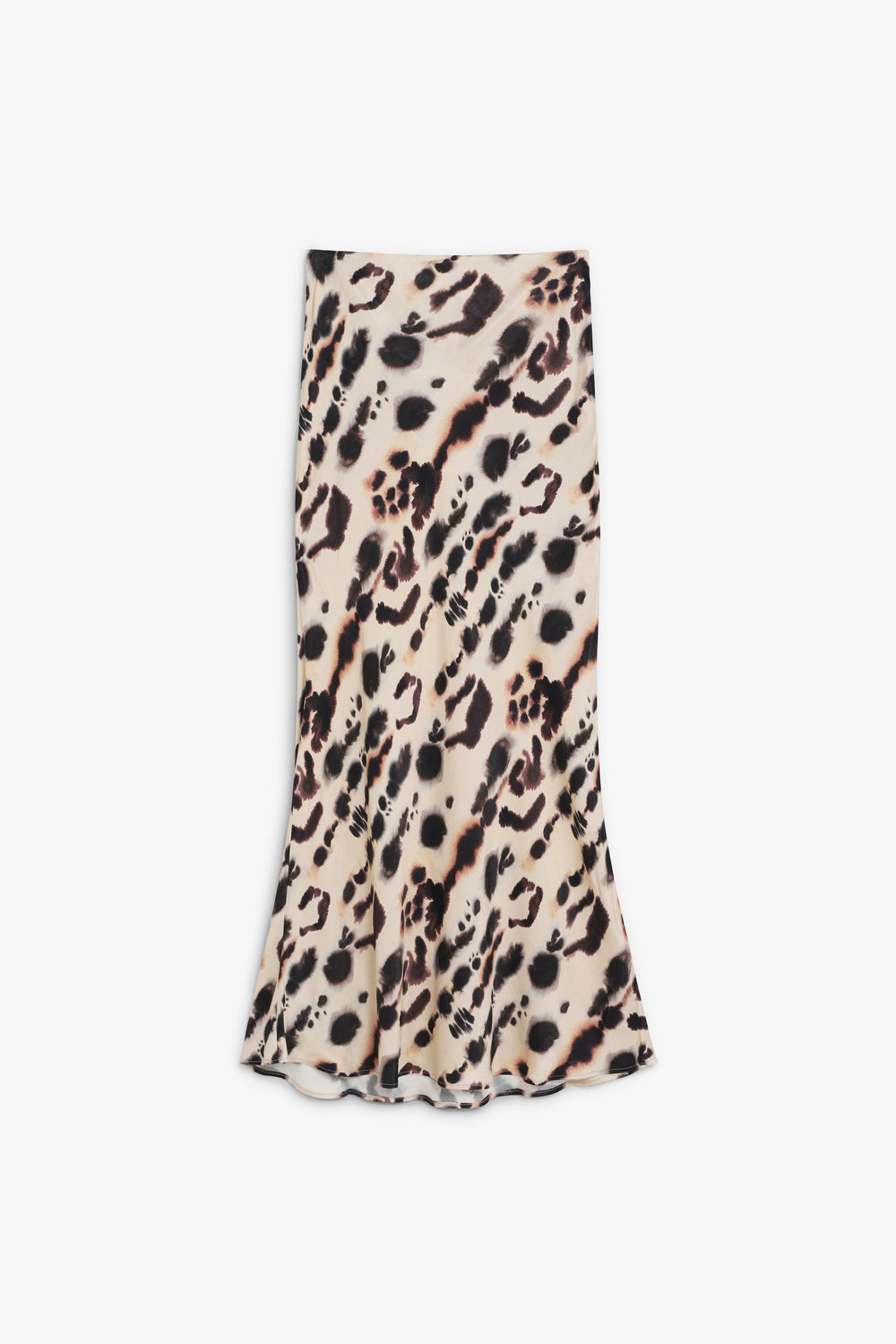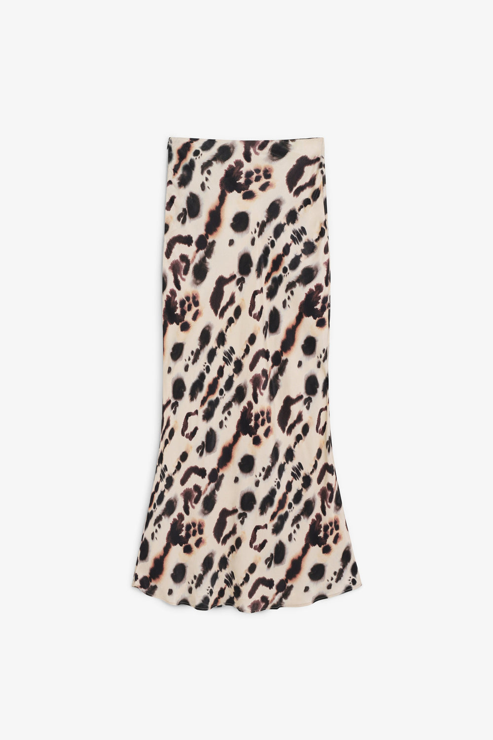 Jupe midi 100 % viscose. Tissu imprimé fluide.