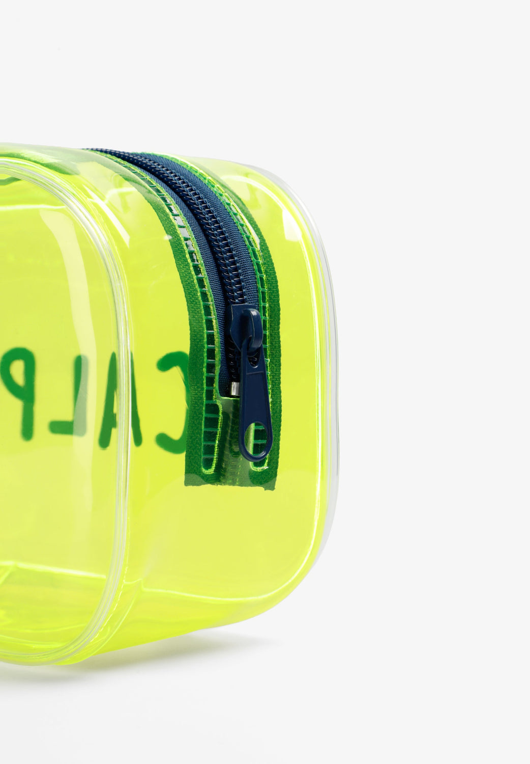 Trousse transparente à fermeture Éclair. Skull et logo imprimés sur le côté. Comprend des flacons transparents pour produits liquides.