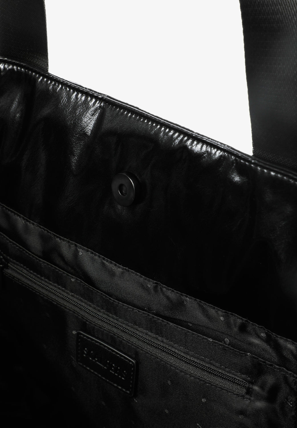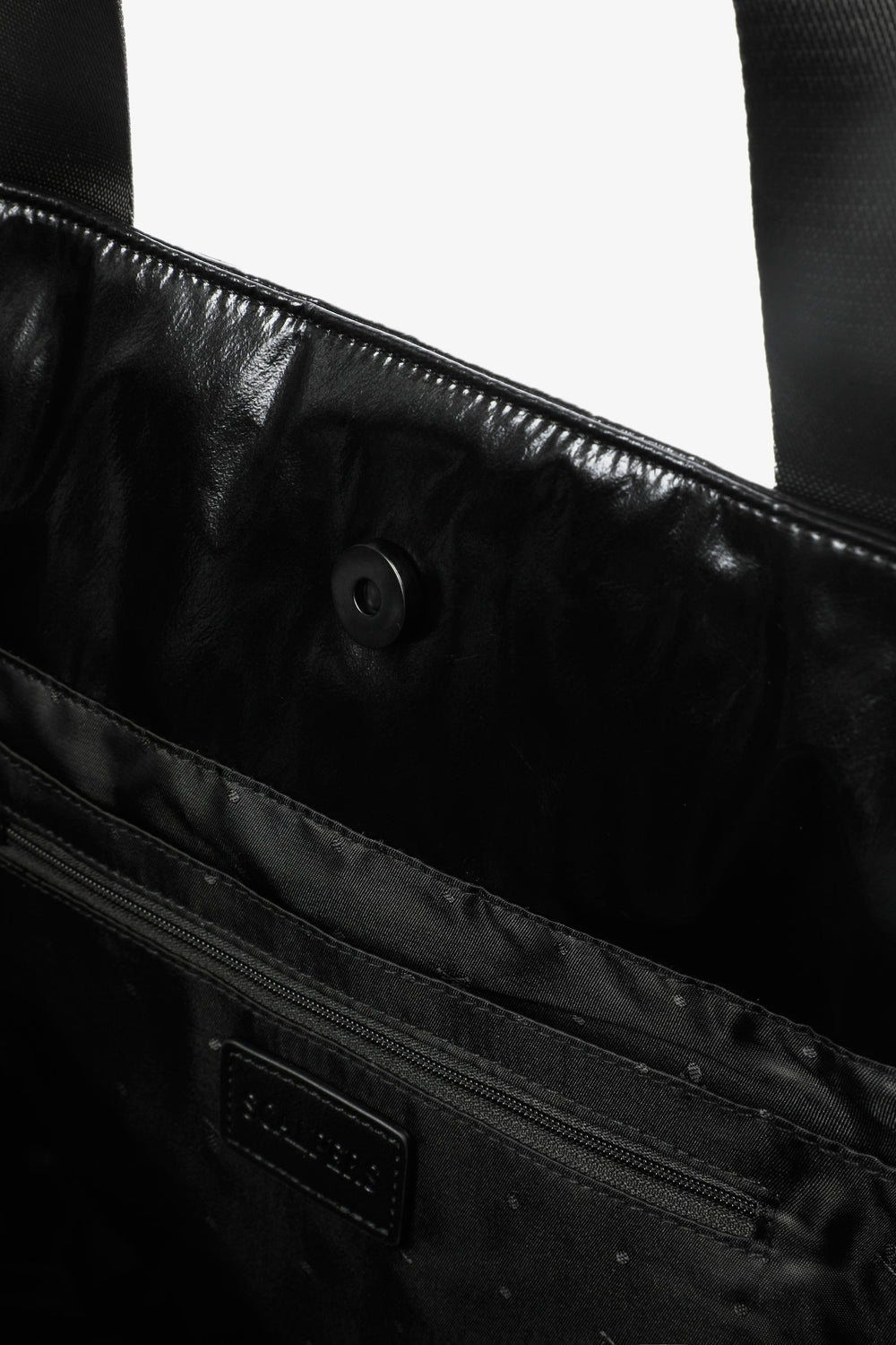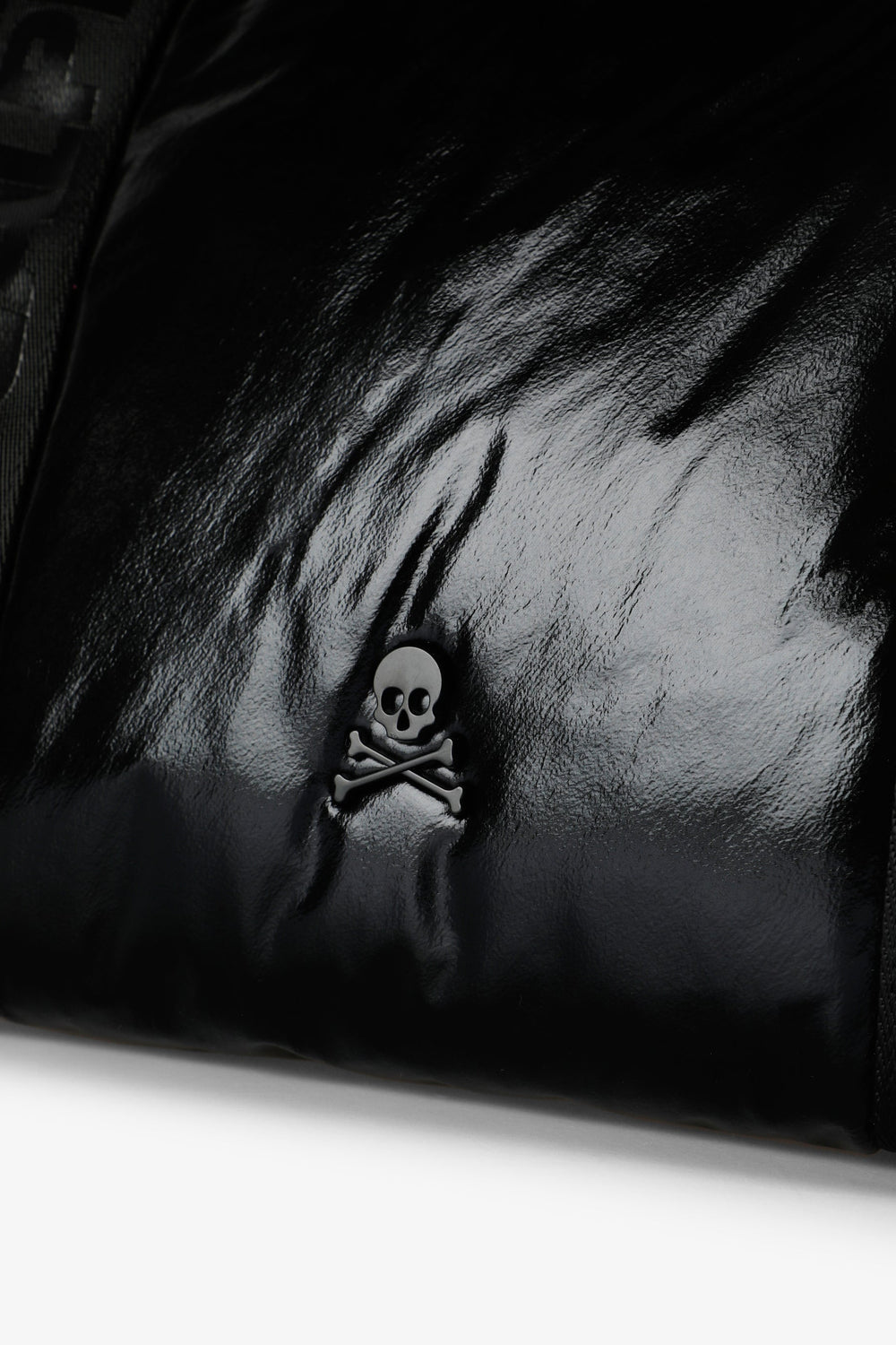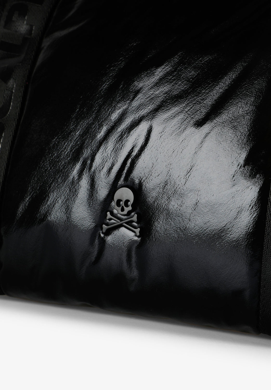 Sac de sport en PU. Water resistant. Double poignée longue et courte. Logo sur les poignées et skull en métal ton sur ton devant. Fermoir aimanté. Poche intérieure à fermeture éclair et écusson cousu avec logo ton sur ton.