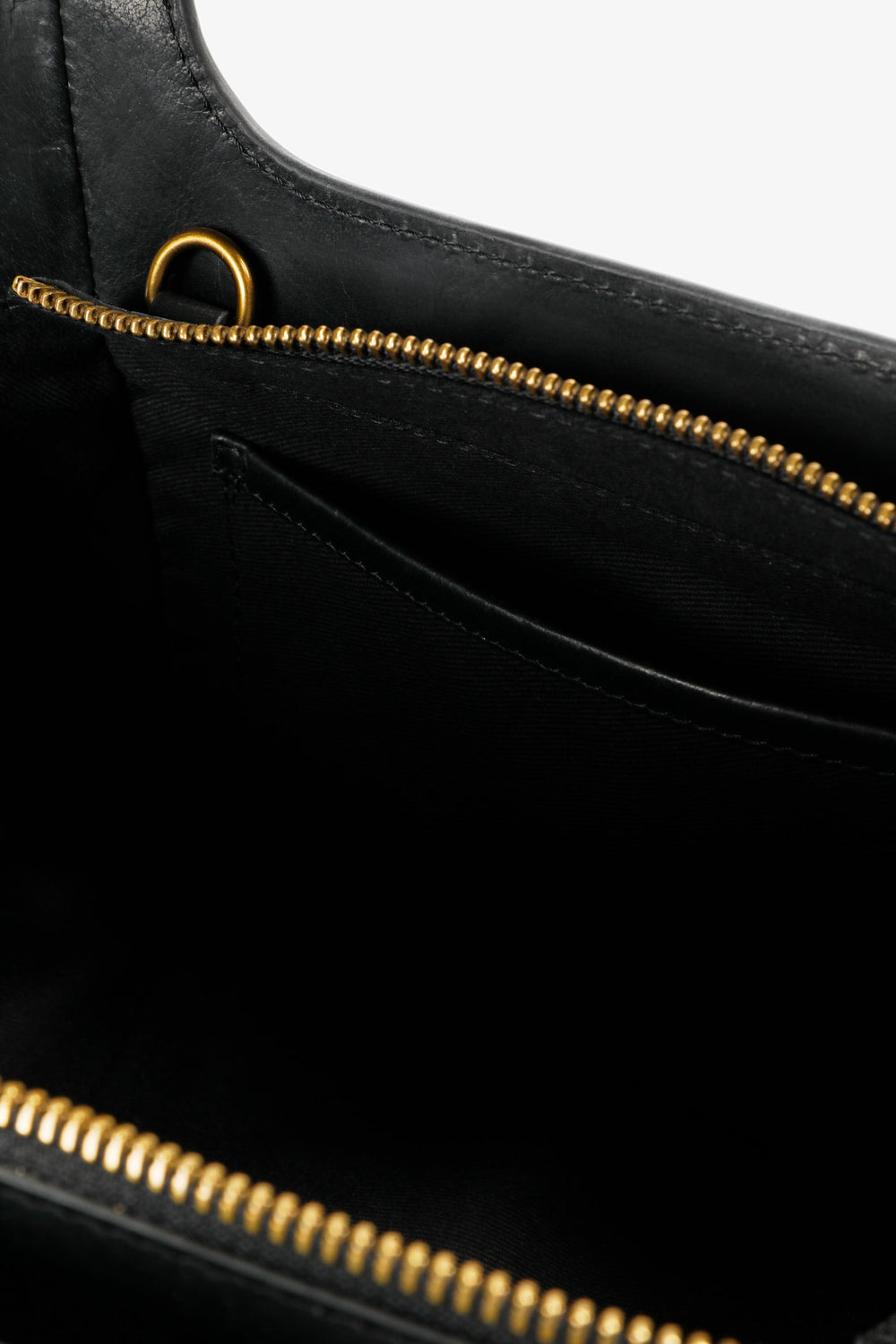 Sac mini 100 % cuir. Fermeture éclair. Option bandoulière. Logo en métal devant.