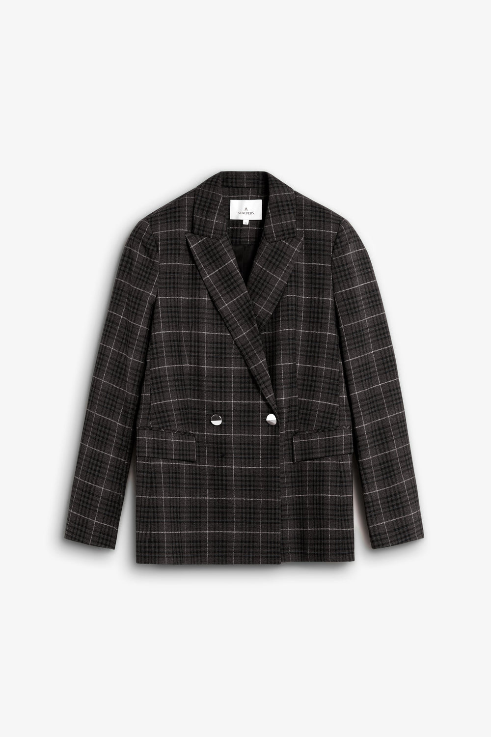 Blazer à revers en pointe. Manches longues. Deux boutons devant. Deux poches à rabat. À carreaux.