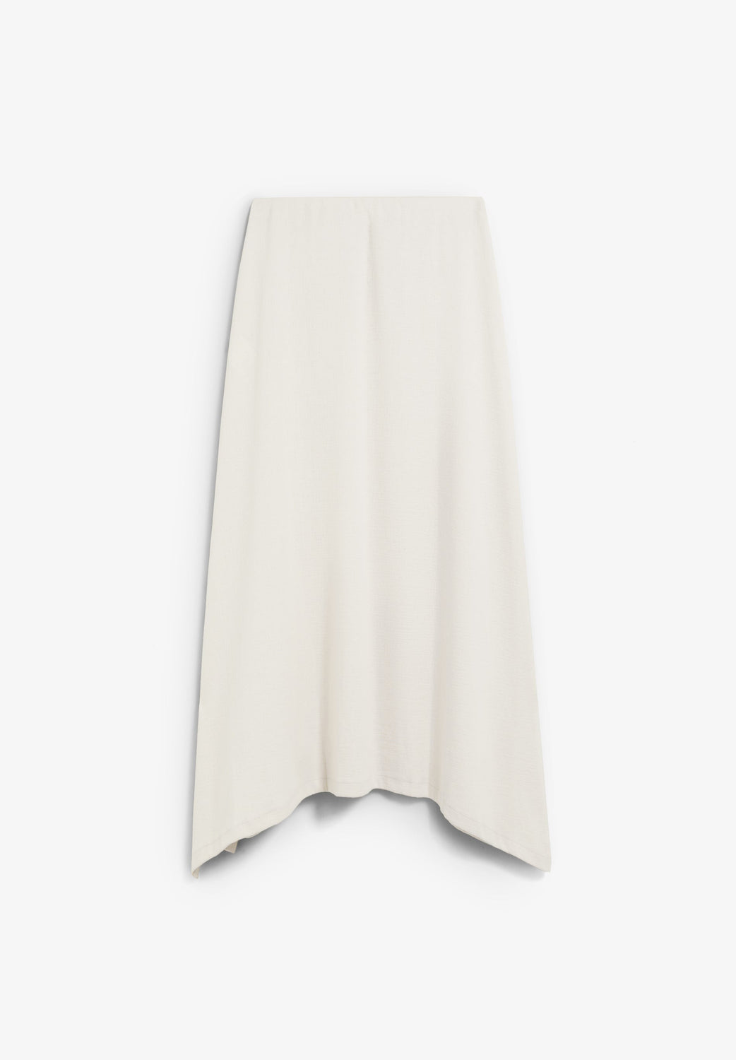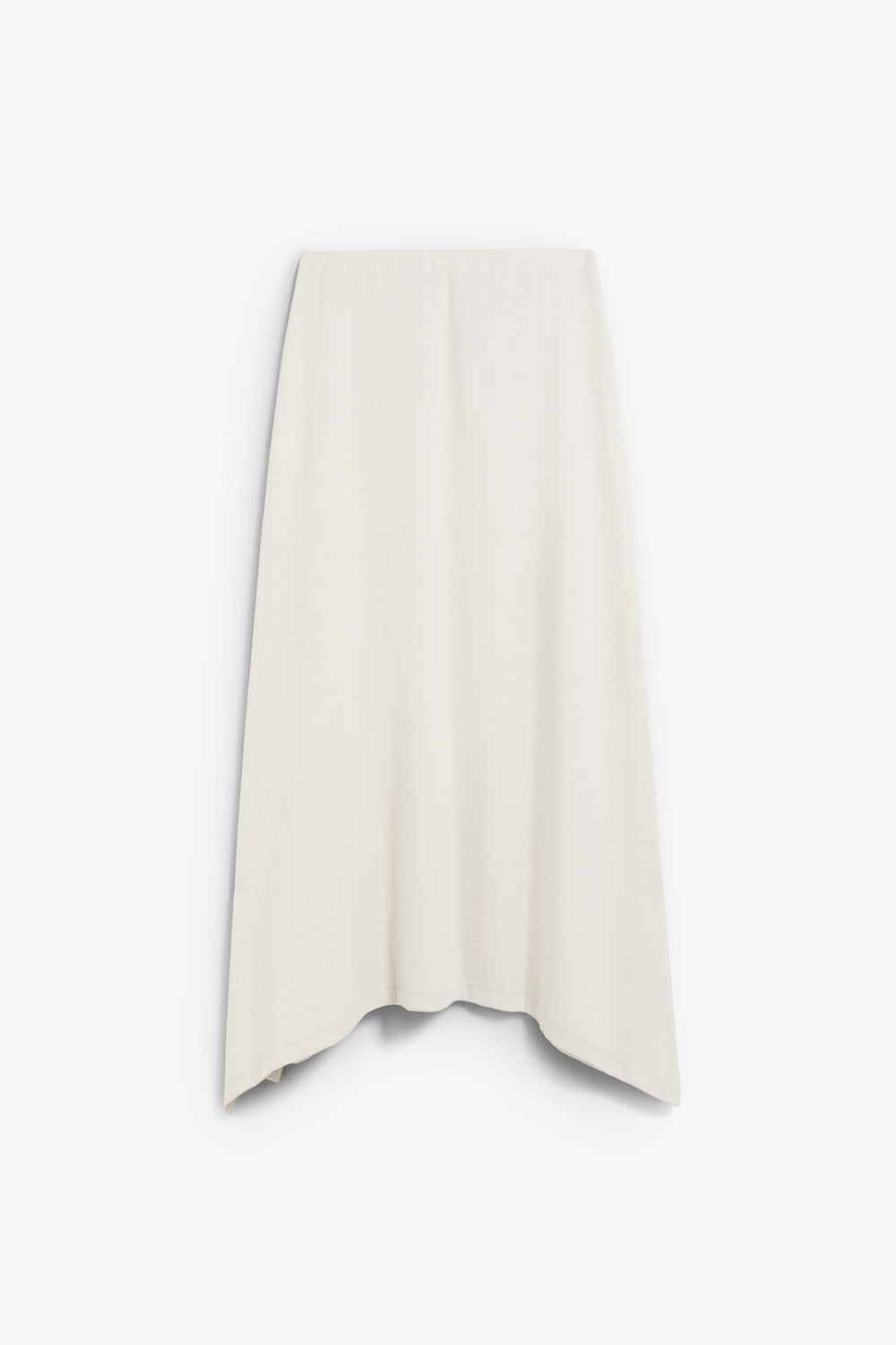 Chunky knit midi skirt made of 100% cotton. Regular fit, elasticated waistband and visible seams. Asymmetric hem.