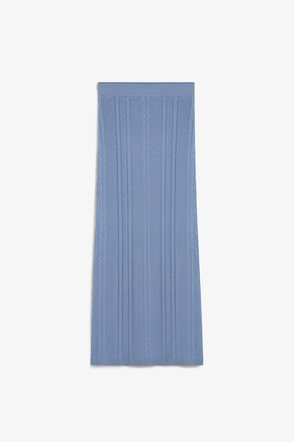 Jupe midi confectionnée dans un mélange de laine. Taille élastique. Fendue sur le côté. Boutons.