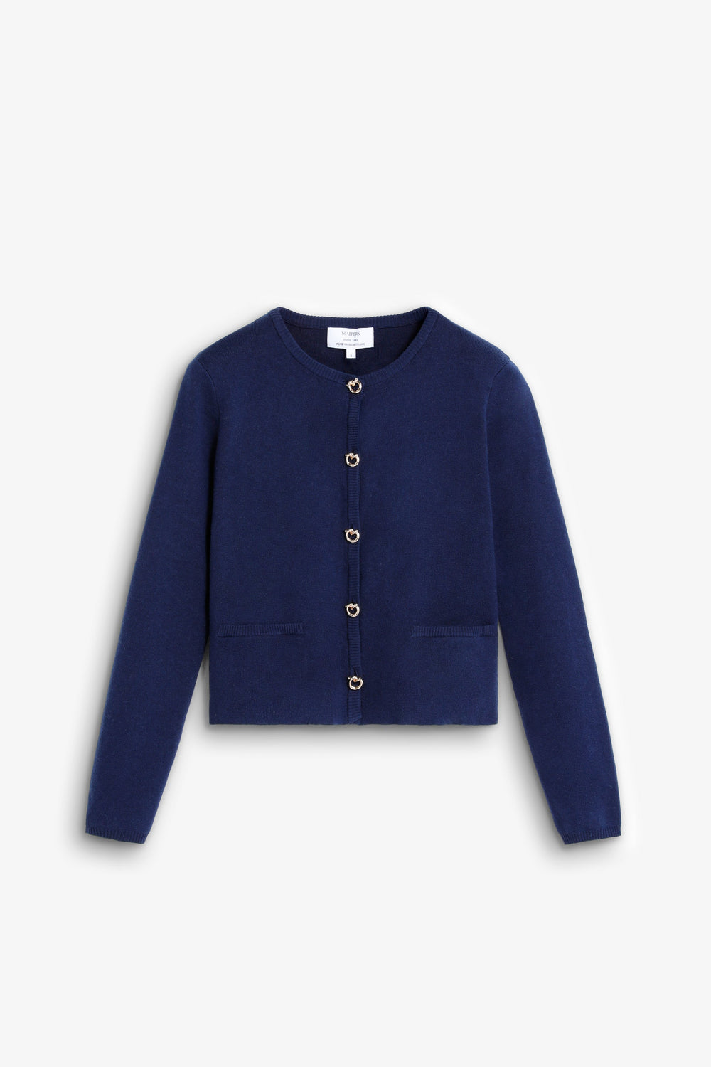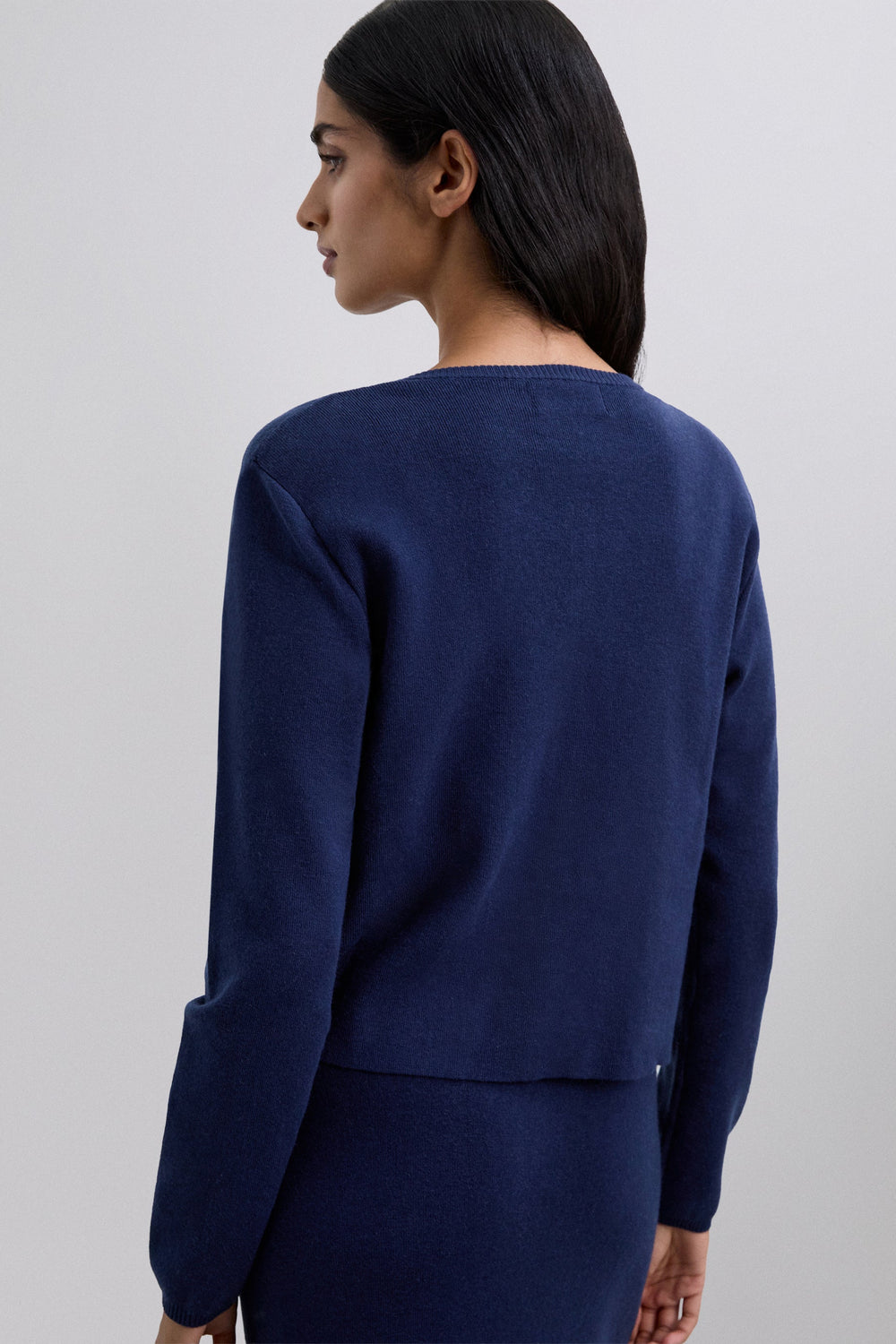 Gilet en coton. Col rond. Manches longues. Fermeture boutonnée devant. Dos structuré et épaulettes. Deux poches sur le devant. Col, poignets, patte de boutonnage et poches à finition côtelée.