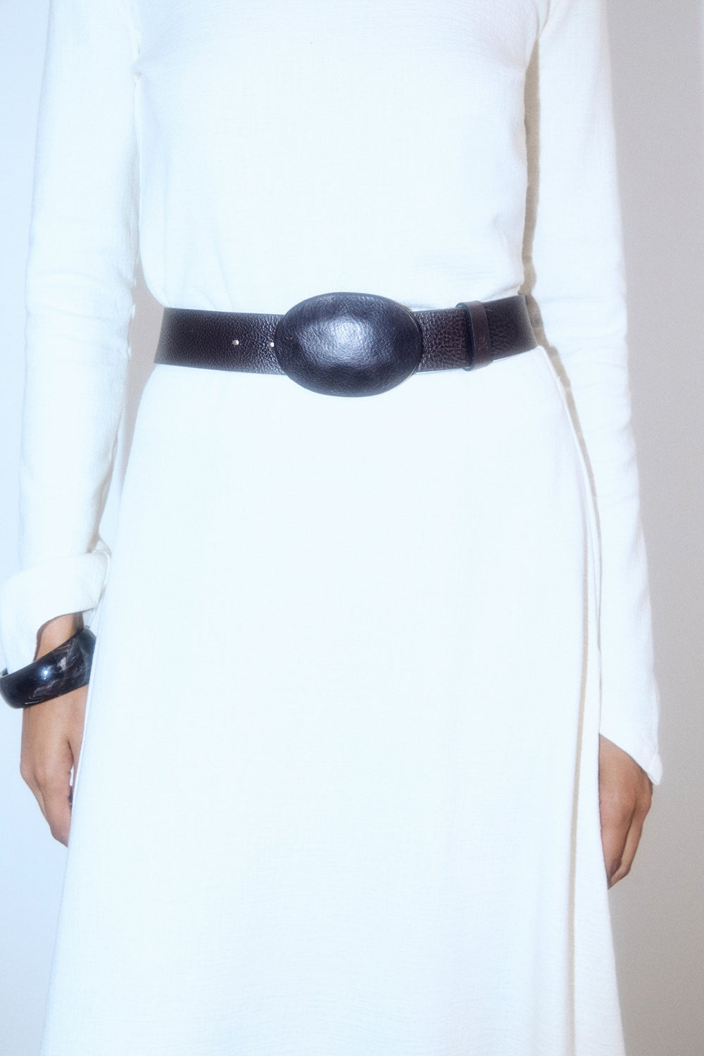 Ceinture 100 % cuir avec boucle en cuir ovale.