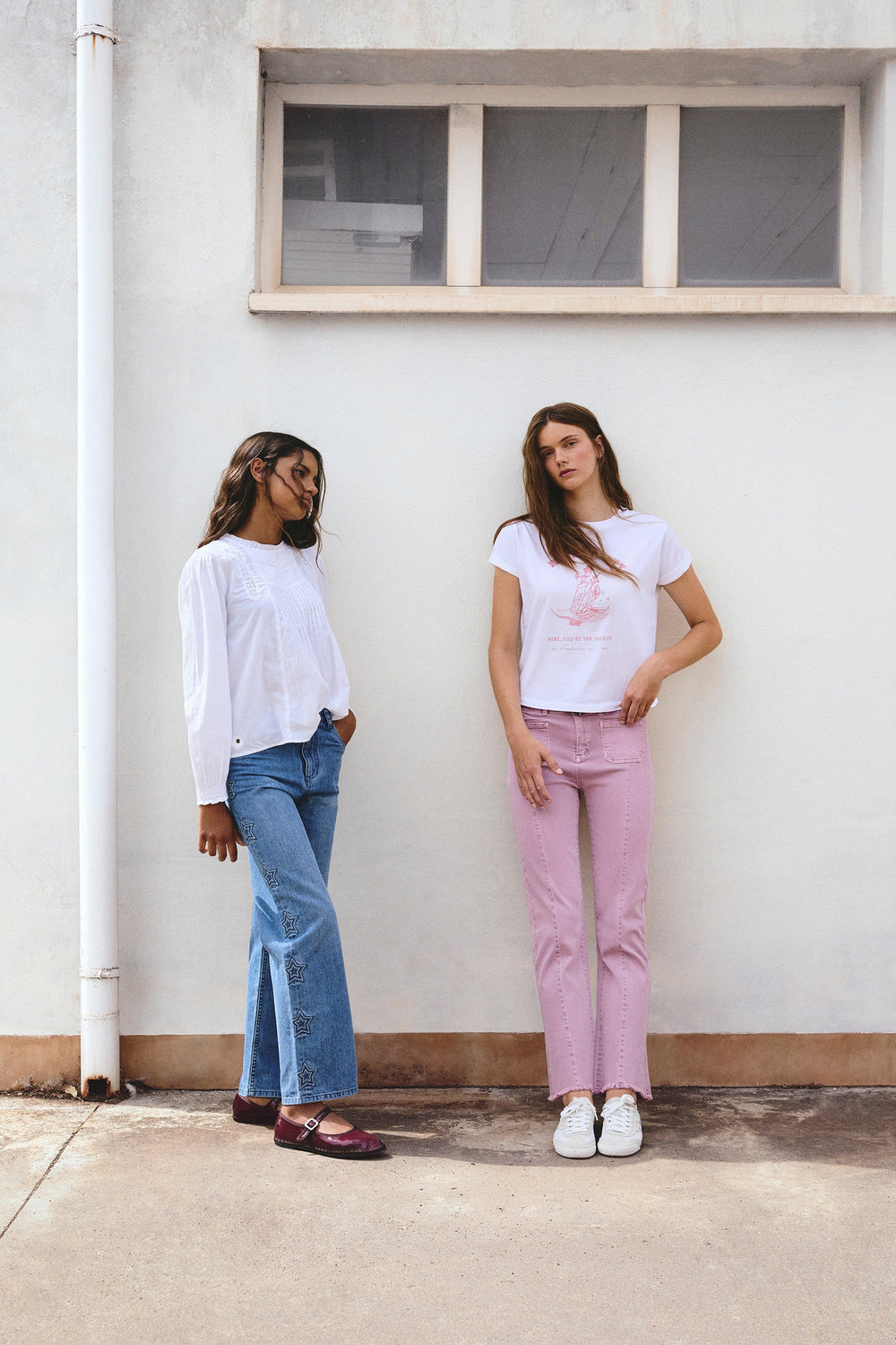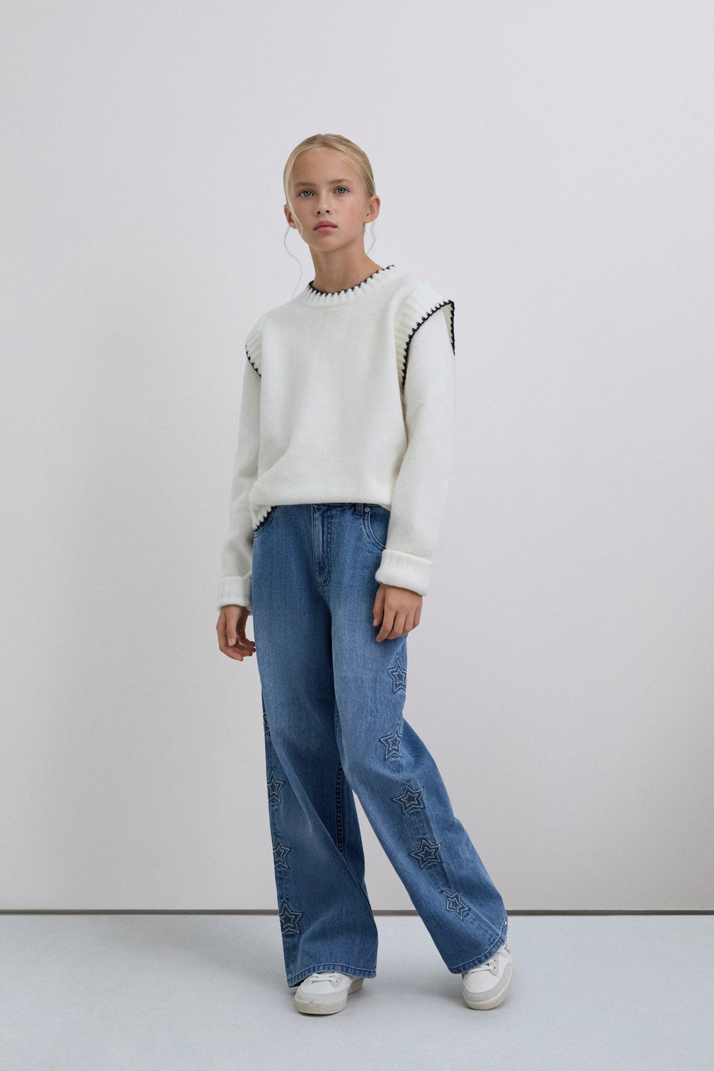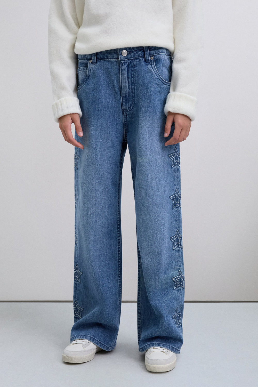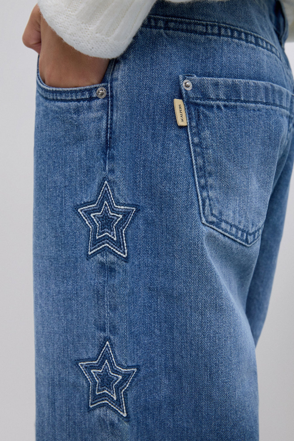 PANTALON WIDE LEG ÉTOILES BRODÉES