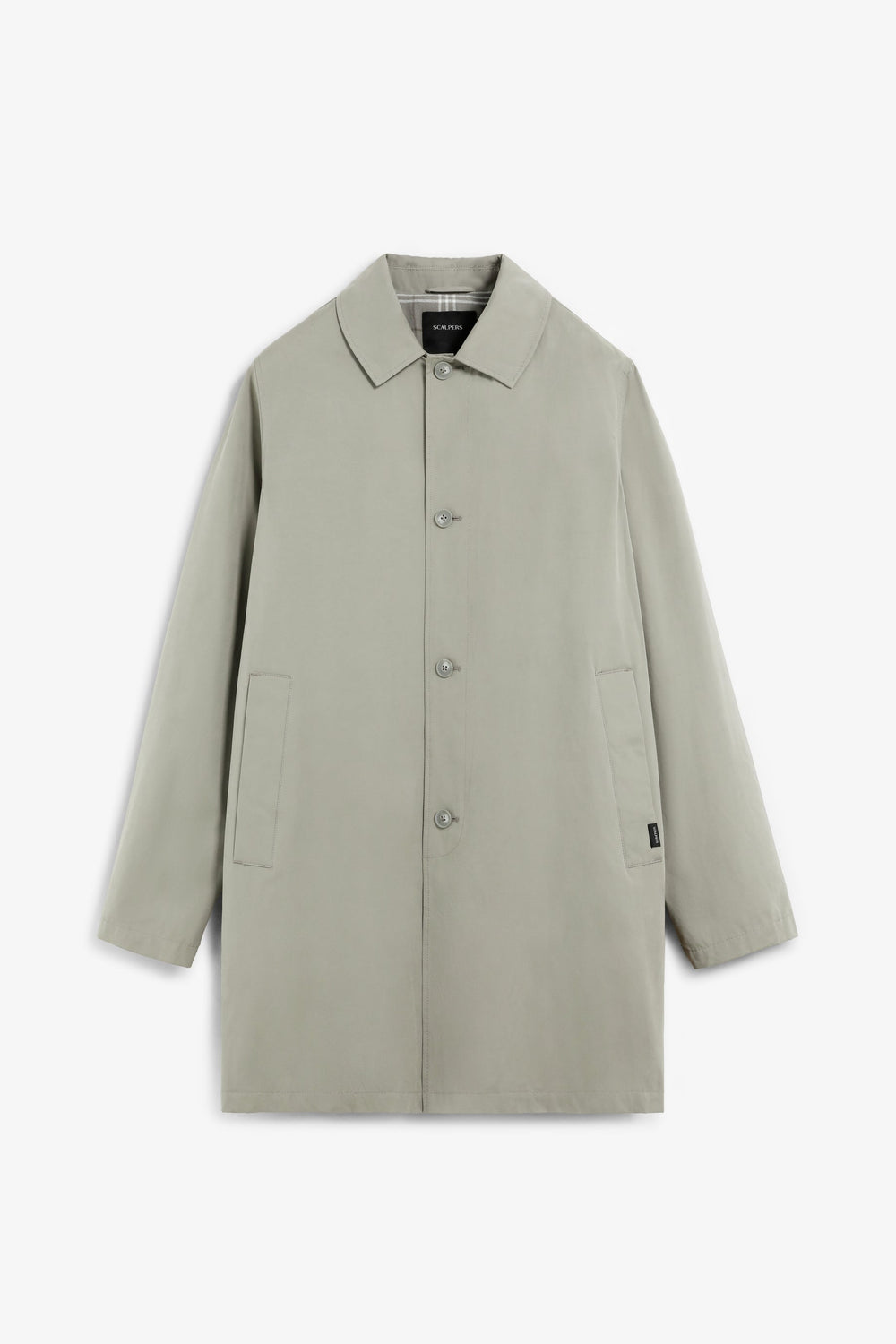 Trench boutonné sur le devant. Col chemise. Deux poches en biais devant. Couture sur toute la longueur. Fermeture boutonnée sur le devant. Doublure à carreaux. Étiquette avec logo sur la poche et à l’intérieur et imprimé skull sur la manche.