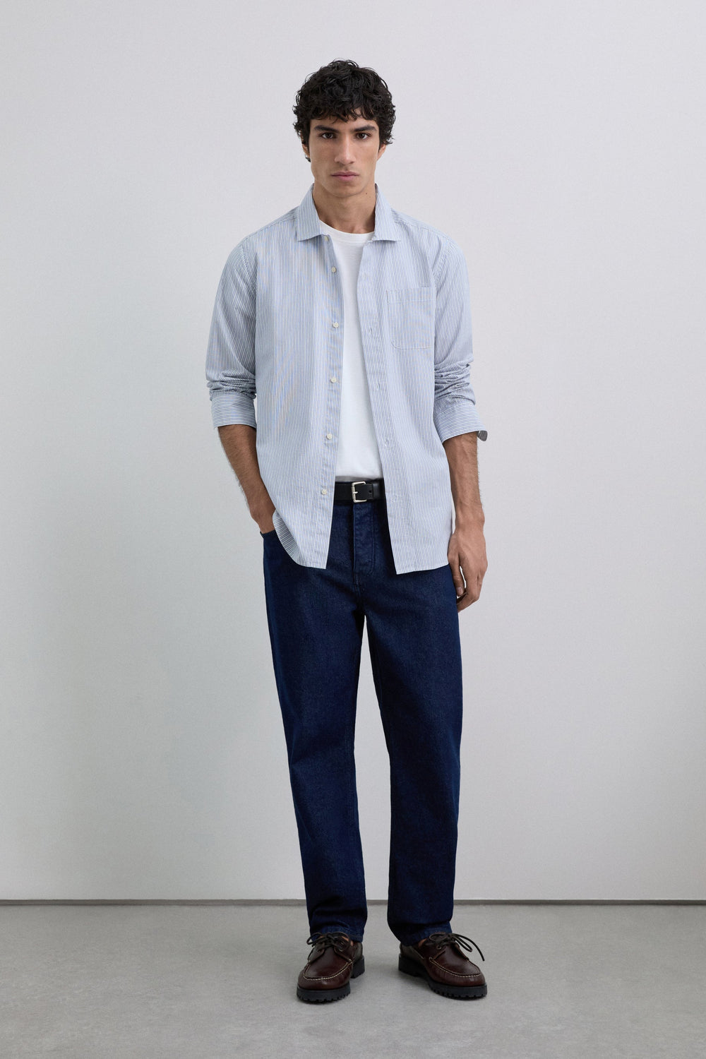 Jean 100 % coton. Cropped. Bouton et fermeture éclair. Poches sur les côtés et à l’arrière. Passants de ceinture.