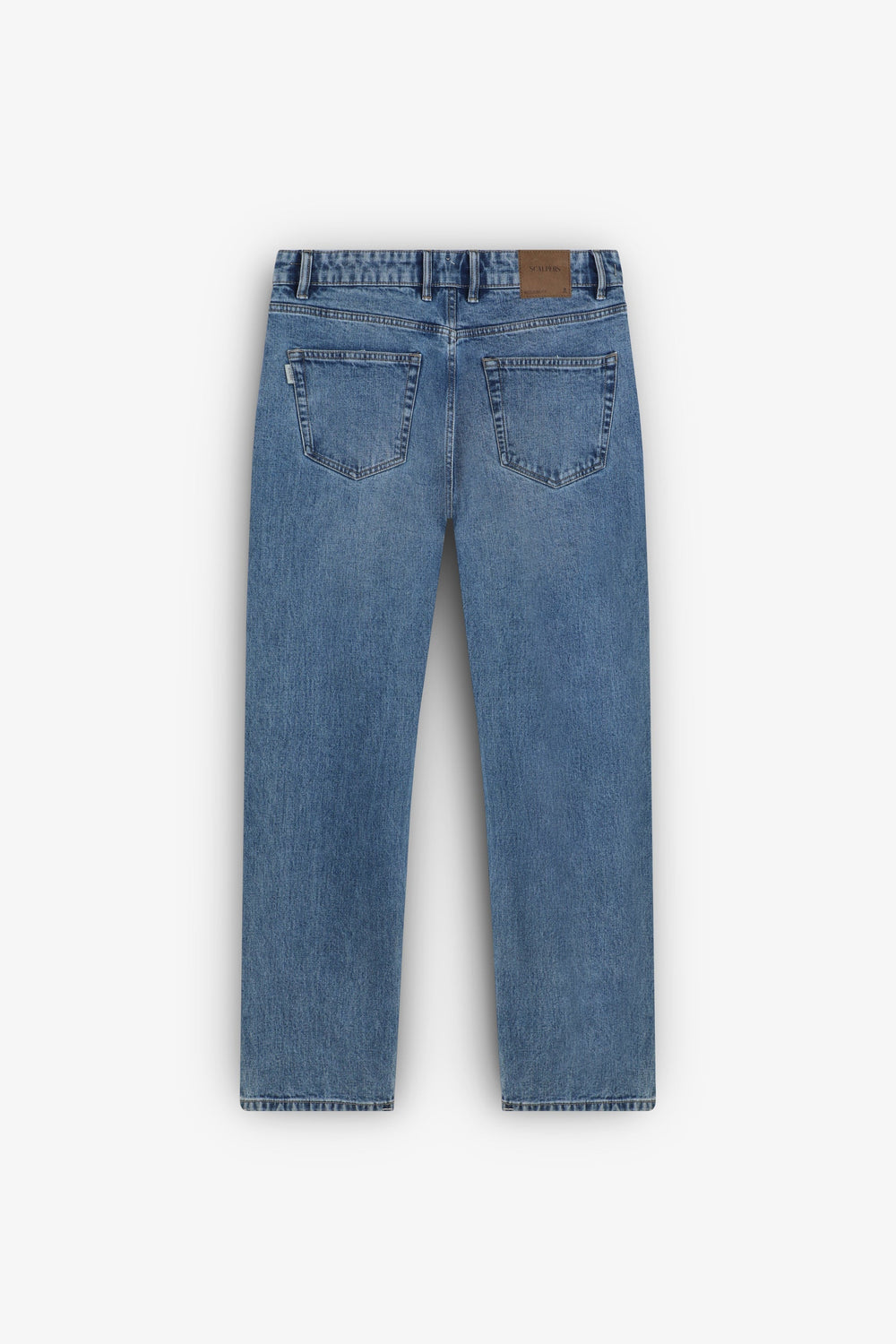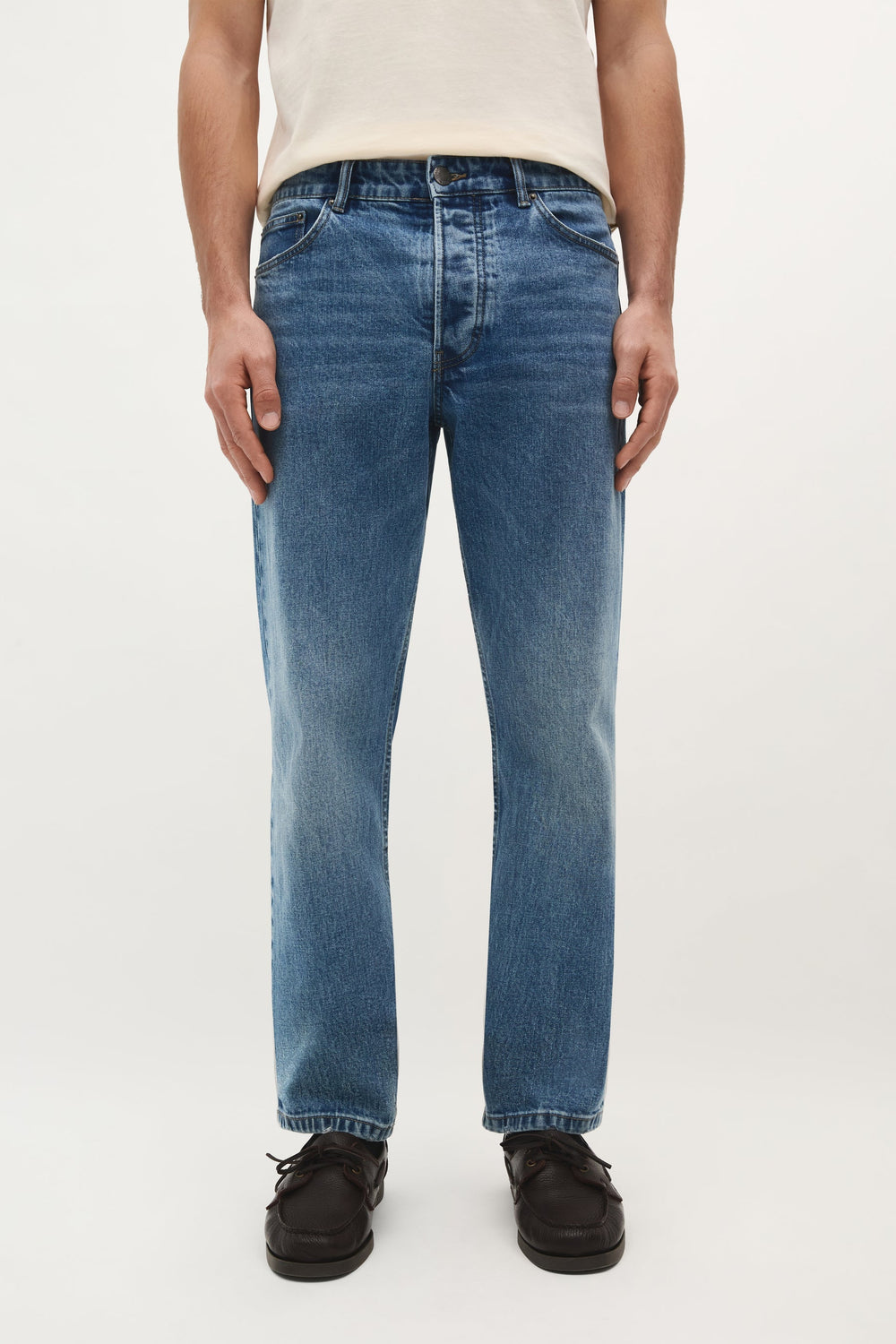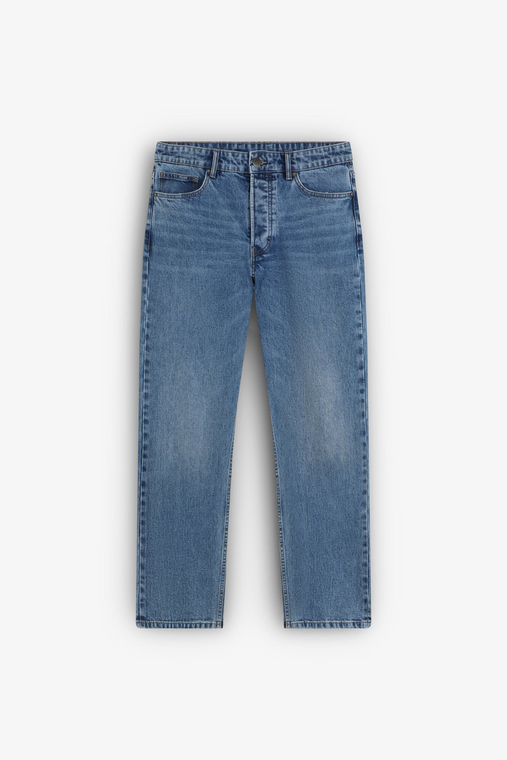 Jeans made of slightly stretchy BCI cotton. Regular fit, button and zip fastening and side and back pockets. Belt loops at the waist.