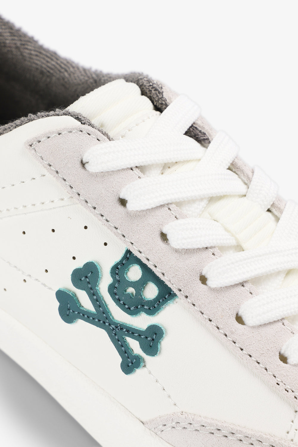 Low top sneakers with contrast side skull. Lace-up fastening. Worn effect rubber sole. Contrast heel detail.