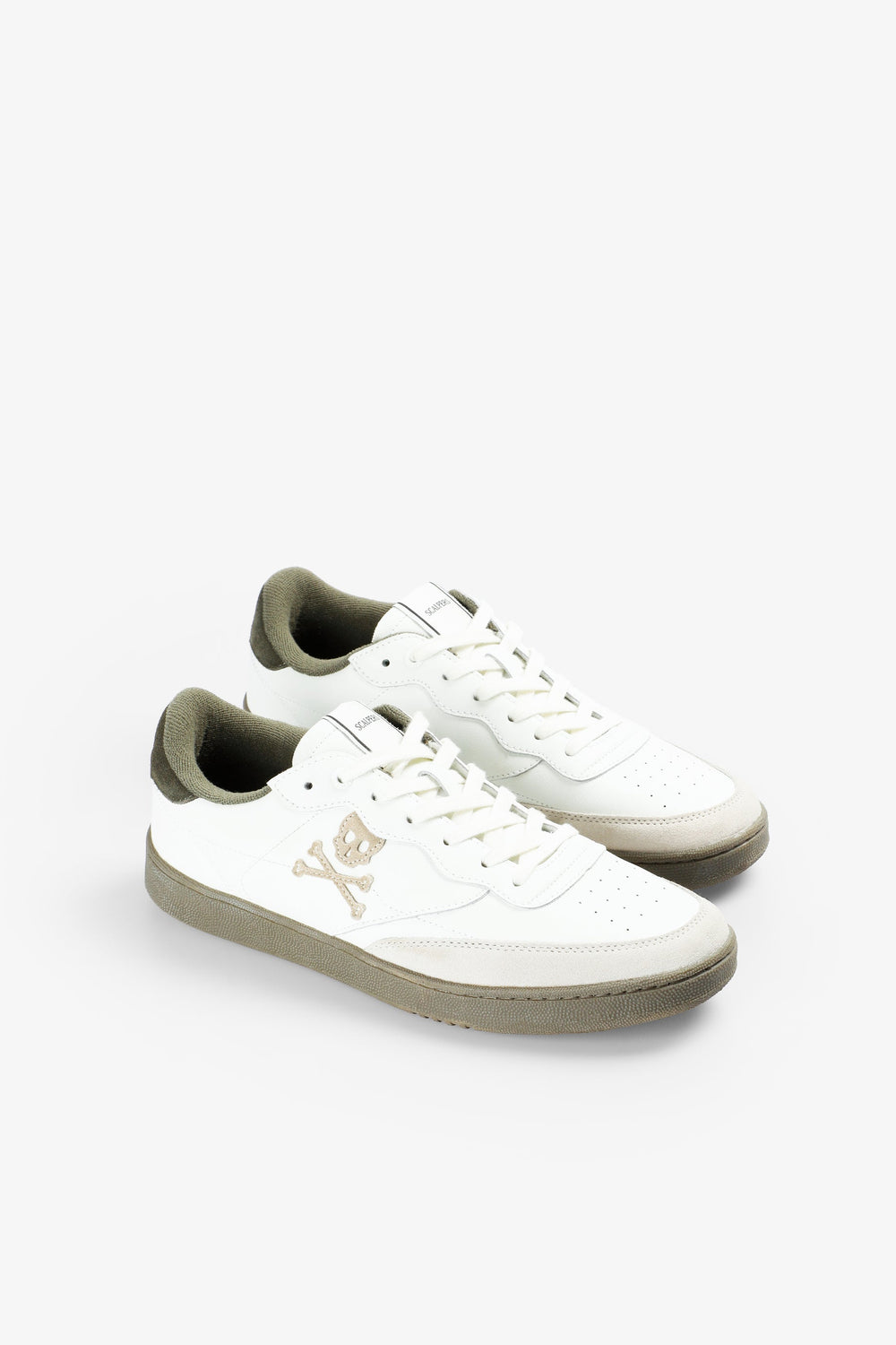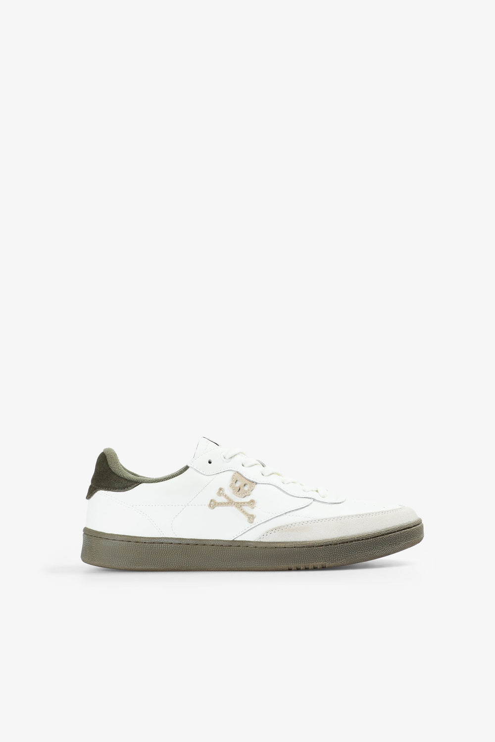 Baskets en cuir avec skull contrastant sur le côté. Lacets assortis. Semelle TPR contrastante. Détail contrastant à l’arrière et logo ton sur ton. Étiquette avec logo sur la languette.