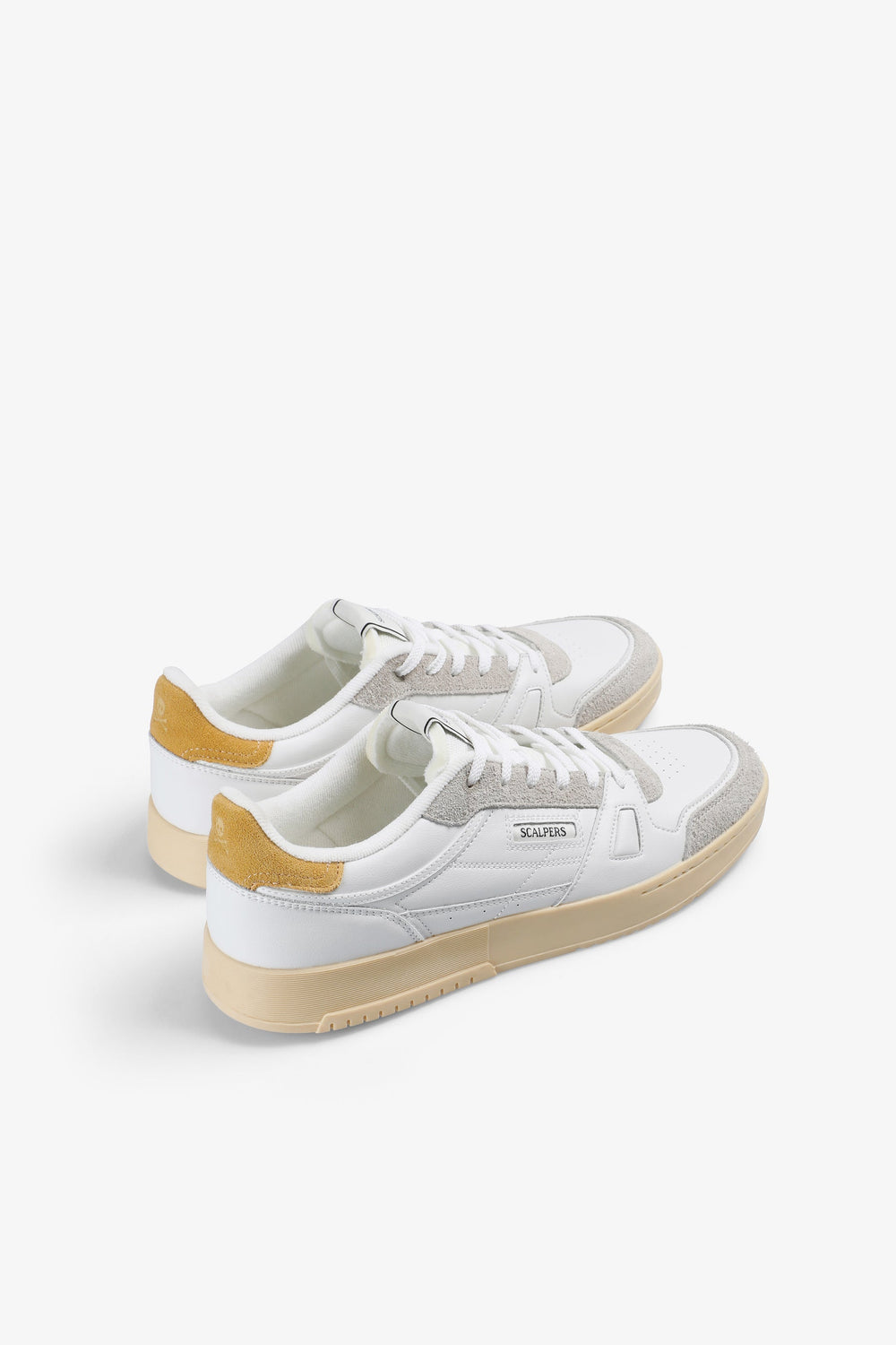 Tennis en cuir. Semelle TPR contrastante. Détail sur le talon et logo contrastant sur le côté. Étiquette avec logo sur la languette.