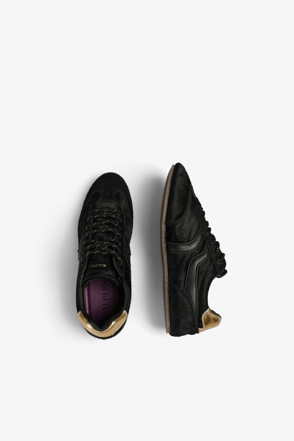 Baskets confectionnées dans un mélange de cuir de vachette. Semelle en caoutchouc résistant et design polyvalent. Talon contrastant avec tête de mort gravée. Motifs contrastants.