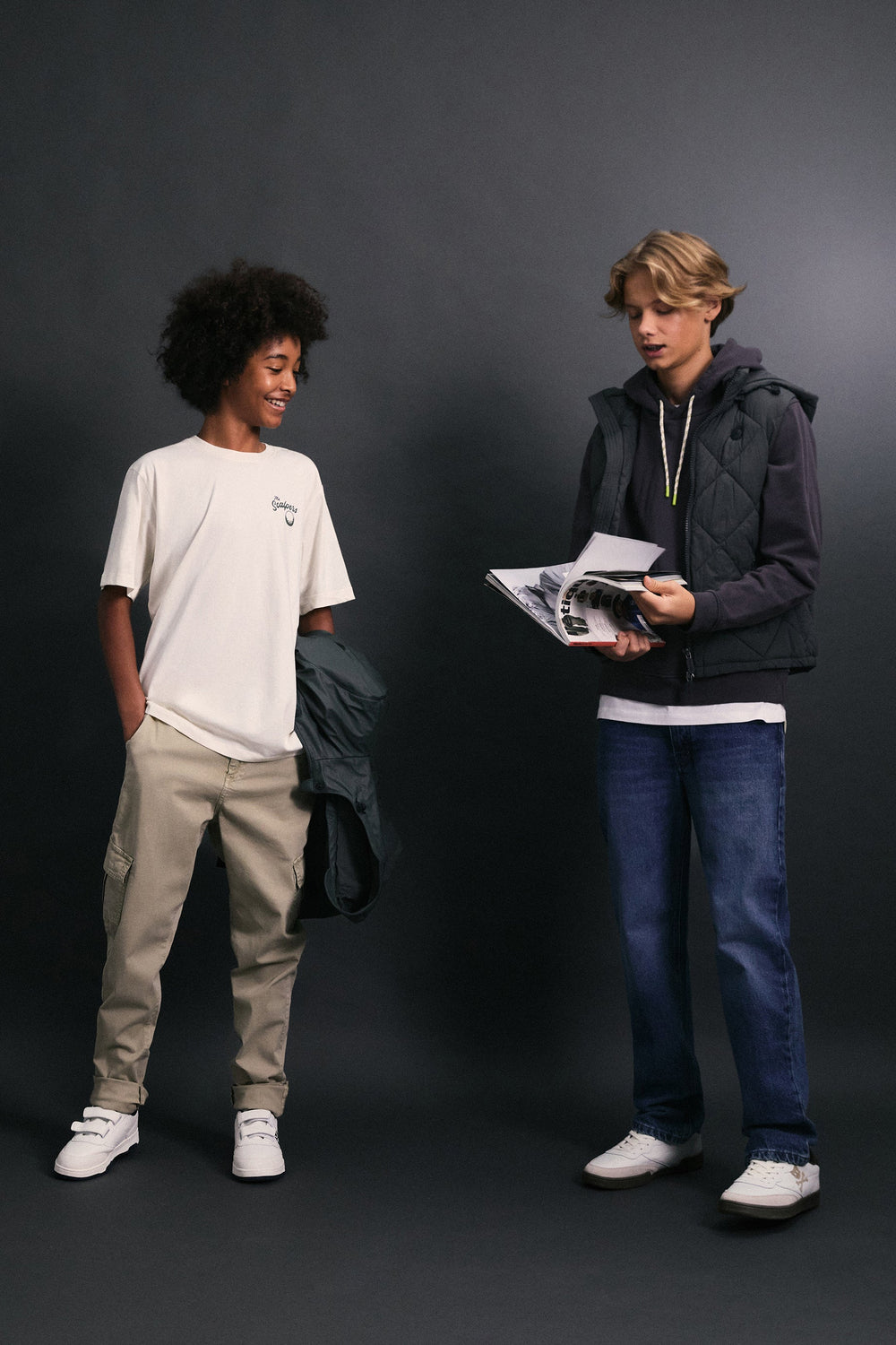 Pantalón cargo confeccionado en algodón BCI ligeramente elástico. Regular fit. Cierre con botón y cremallera. Bolsillos frontales y traseros. Trabillas en cintura y bolsillos en pernera con tapeta.