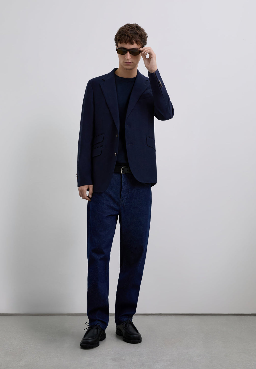 Blazer made of wool. Classic lapel. Chest welt pocket and three slanted flap pockets. Two button fastening at the front. Long sleeves.
