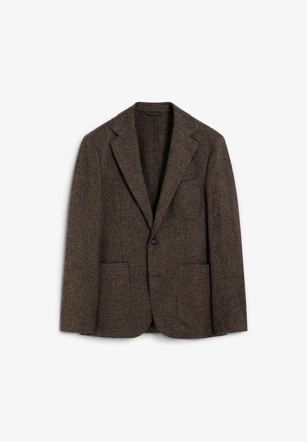 Checked blazer made of wool. Regular lapels. Three patch pockets. Two button fastening at the front. Long sleeves.