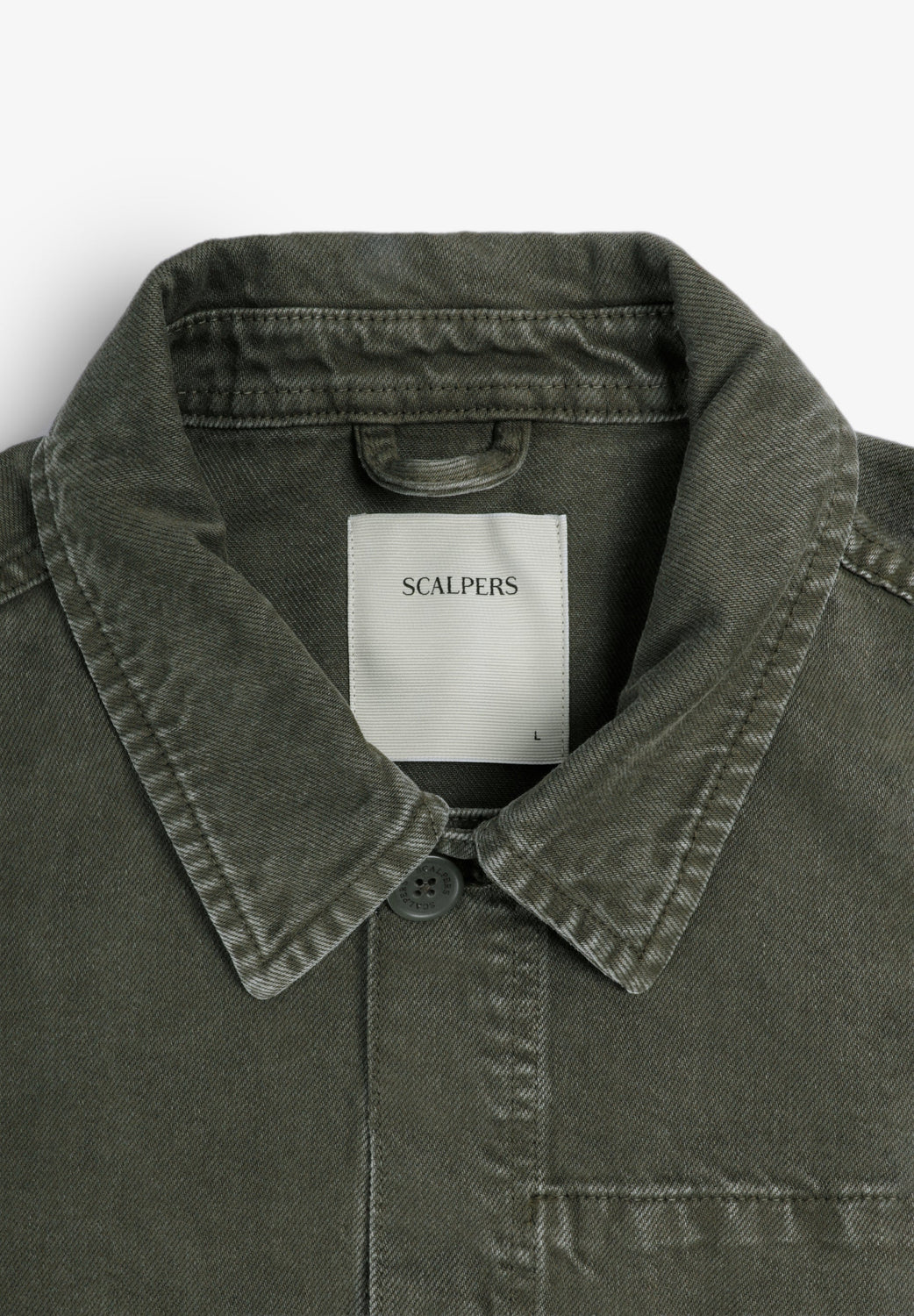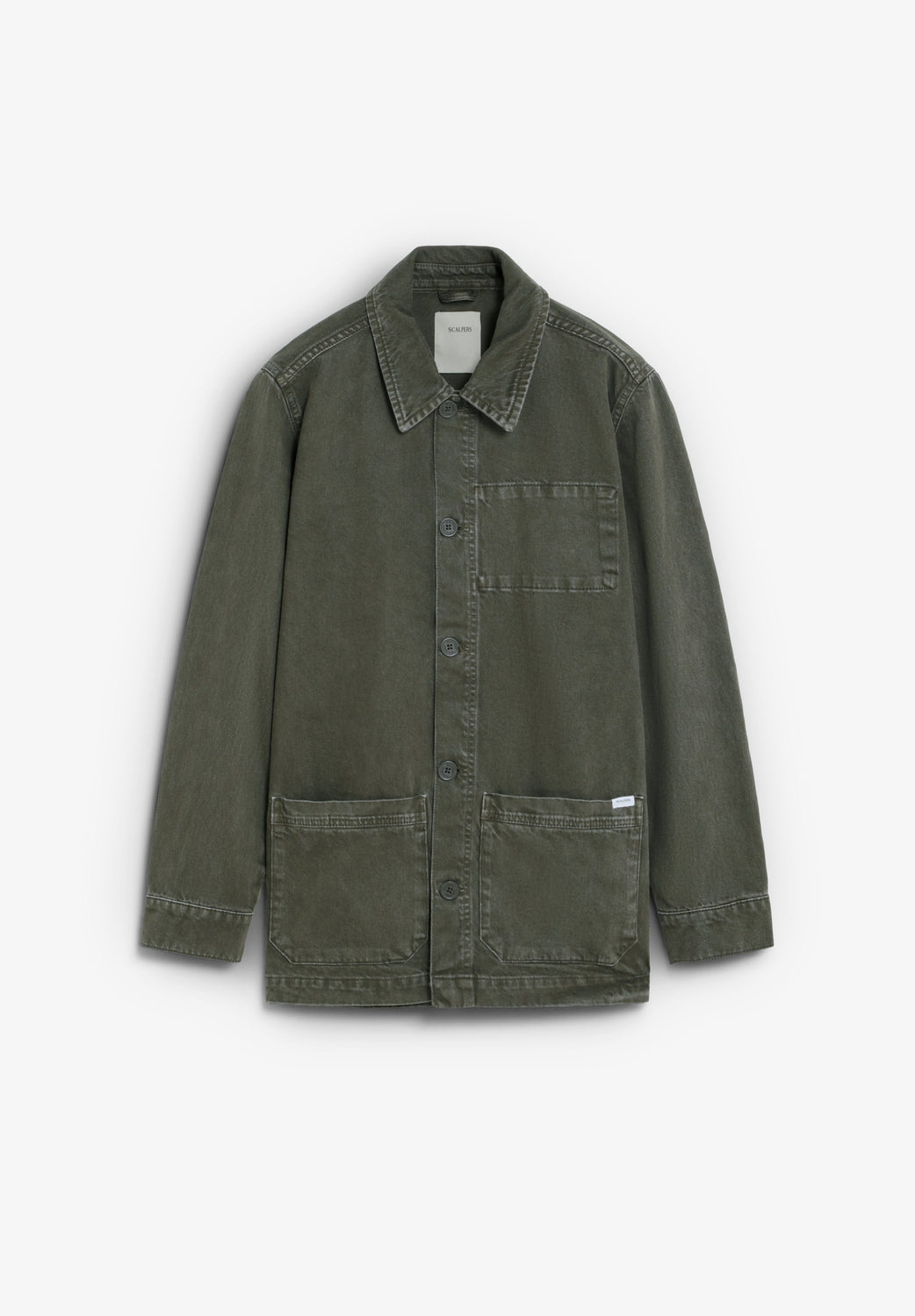 Giacca realizzata in 100% cotone. Due tasche anteriori applicate con etichetta su quella sinistra. Tasca sul petto simulata. Chiusura con bottoni.