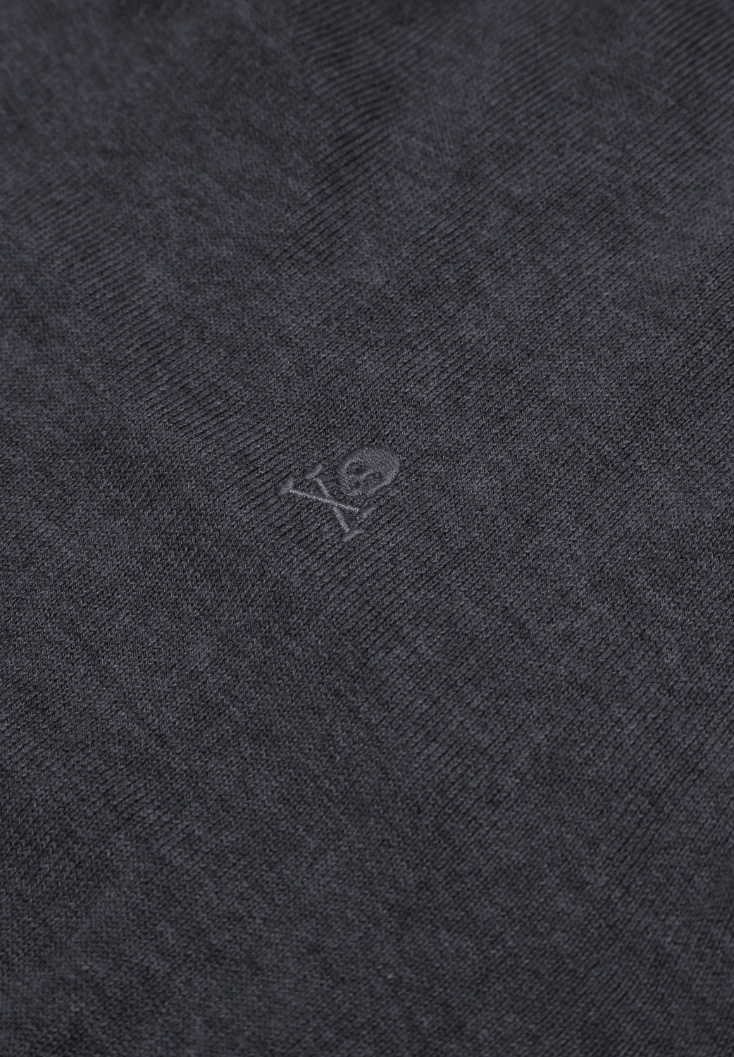 Sweater made of 100% high quality Supima cotton. V-neck. Matching embroidered skull on the chest. Ribbed trim.