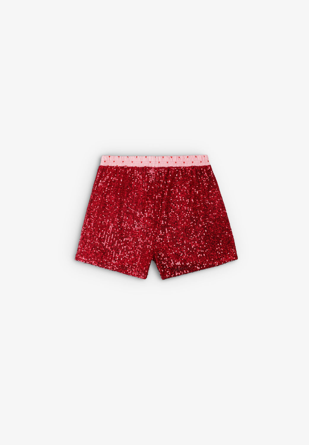 Sequinned boxer shorts. High-rise with elasticated waist with front button fastening.