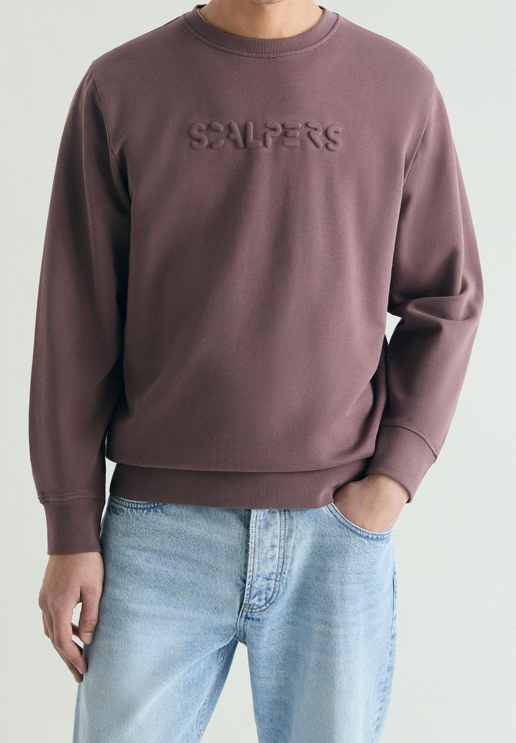 Felpa realizzata in 100% cotone BCI. Regular fit. Collo rotondo. Testo in rilievo sul davanti e sul retro. Effetto slavato. Finiture a costine.