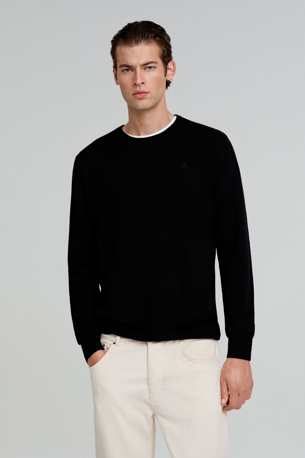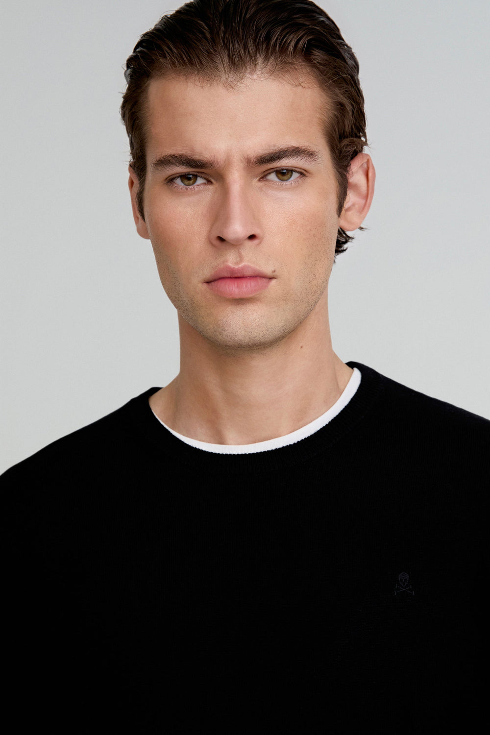 Skull sweater. Crafted from a blend of BCI cotton and cashmere. Regular Fit. Crew neck. Long sleeves. Tonal embroidered skull detail on the chest.