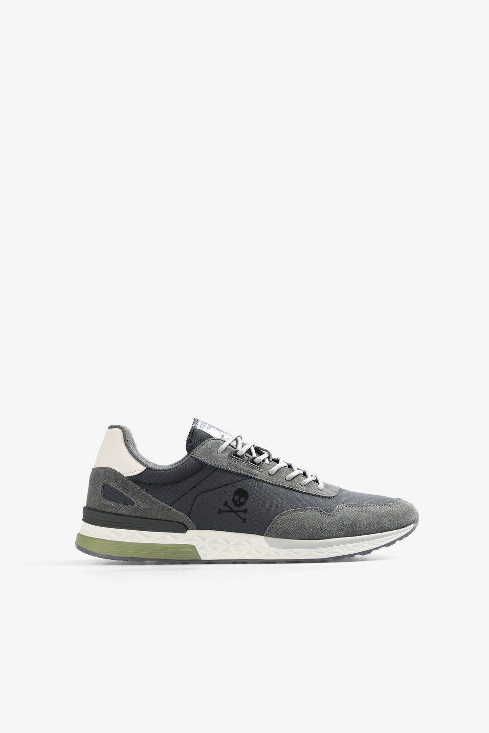 Sneakers met contrasterende doodskop op de zijkant gemaakt van suède en nylon. Ton sur ton vetersluiting, EVA- en TPR-zool en gepersonaliseerd label op de tong.