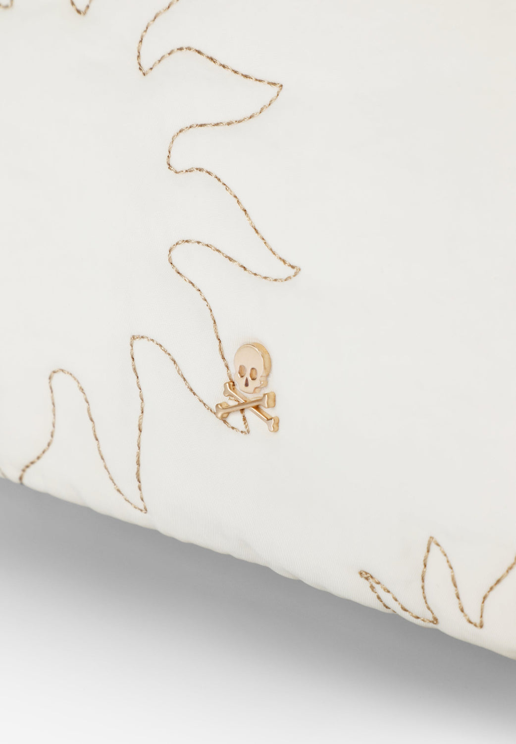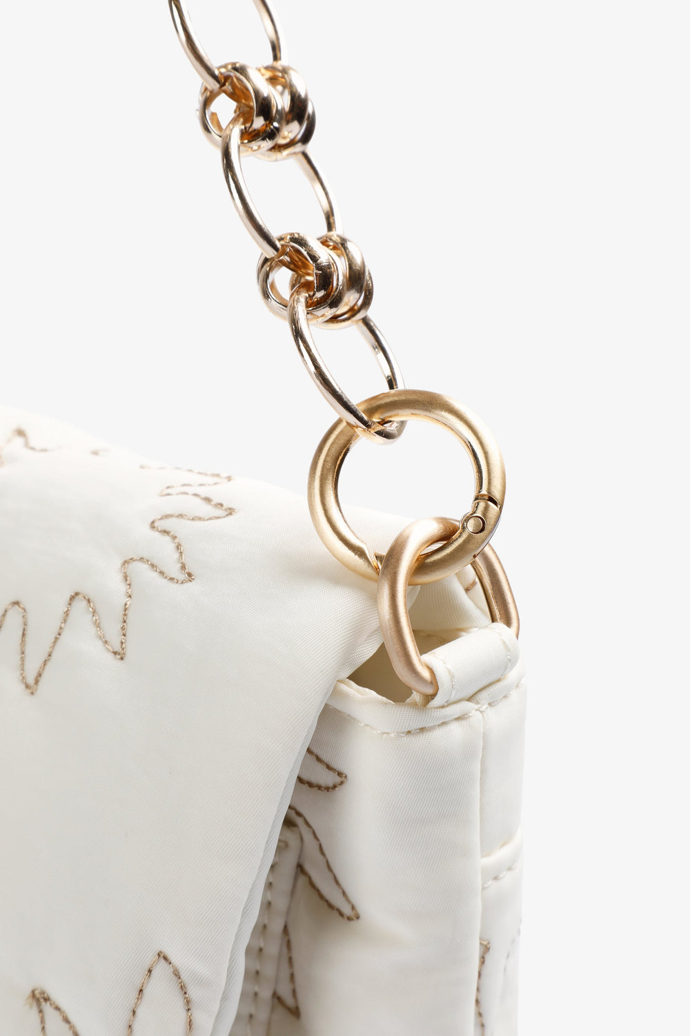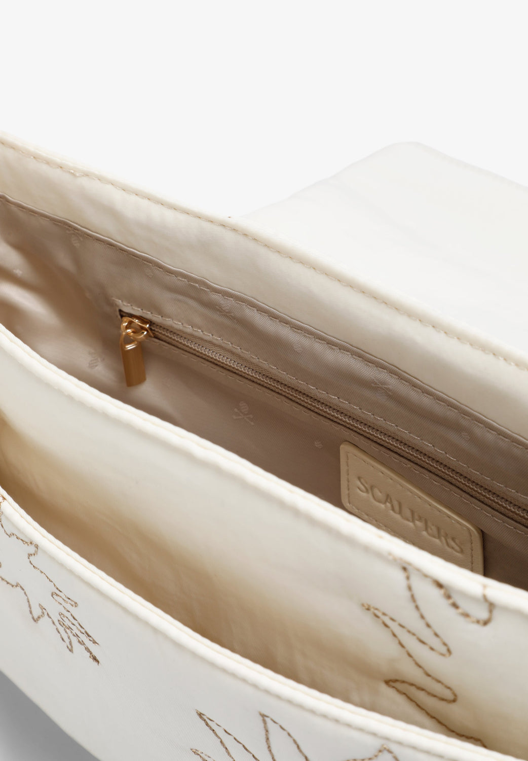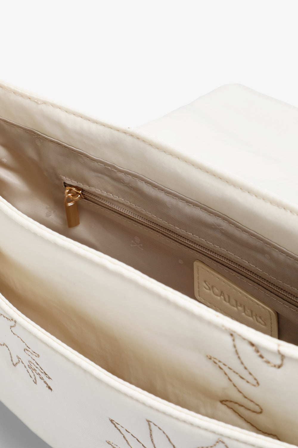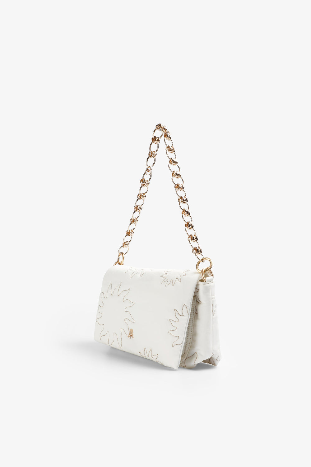 Tas van technische stof met geborduurde zonnedetails. Voering, dubbel compartiment met binnenzak met rits. Magneetsluiting. Metallic logo op de voorkant.. Dubbel hengsel met meerdere posities.