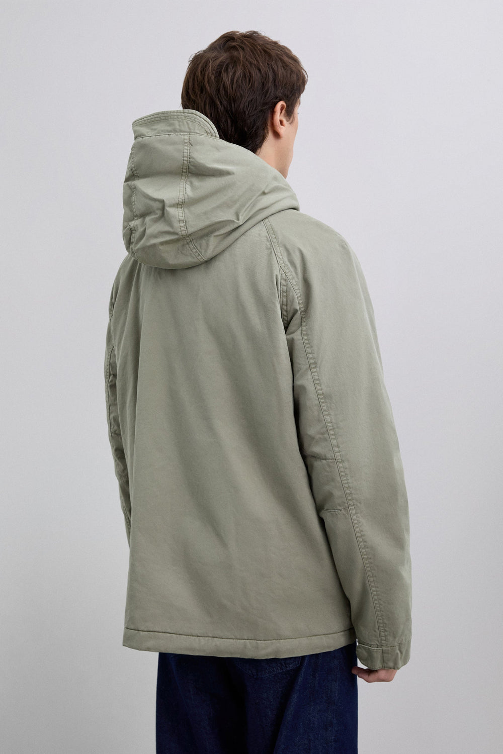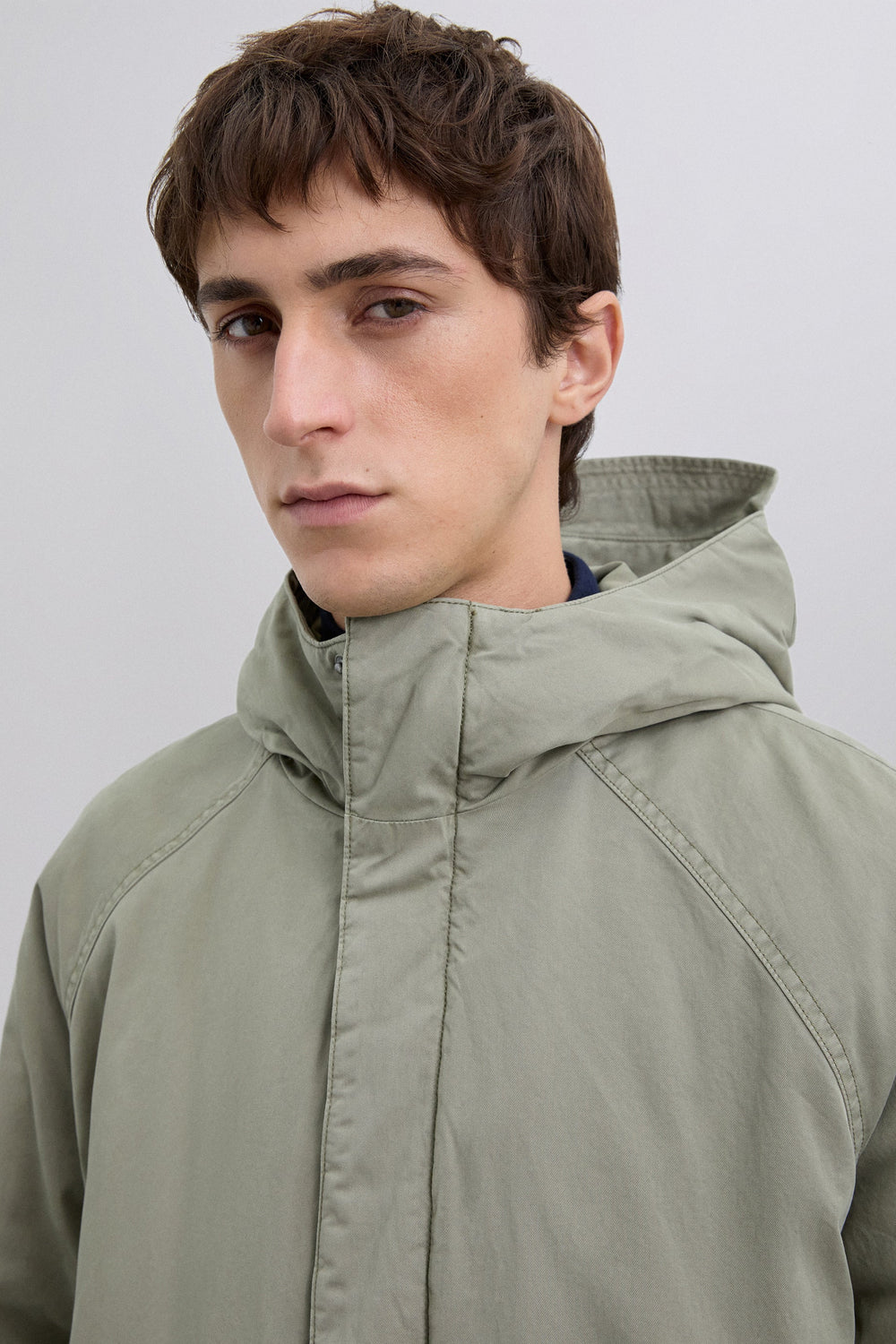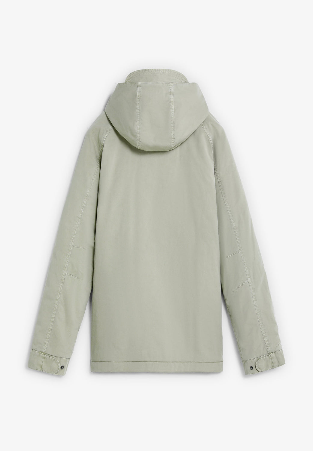 Parka gemaakt van 100% biologisch katoen. Klepzakken met verborgen ritsen. Manchet verstelbaar met drukknoop. Geïntegreerde kap. Licht gewatteerd. High-density print met logo op mouw. Raglanmouwen. Sluiting met tweewegrits.