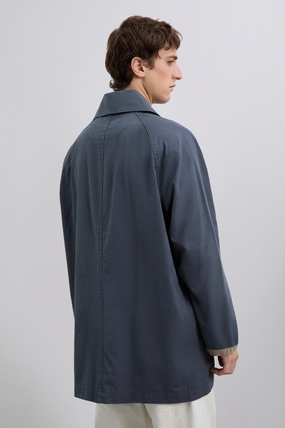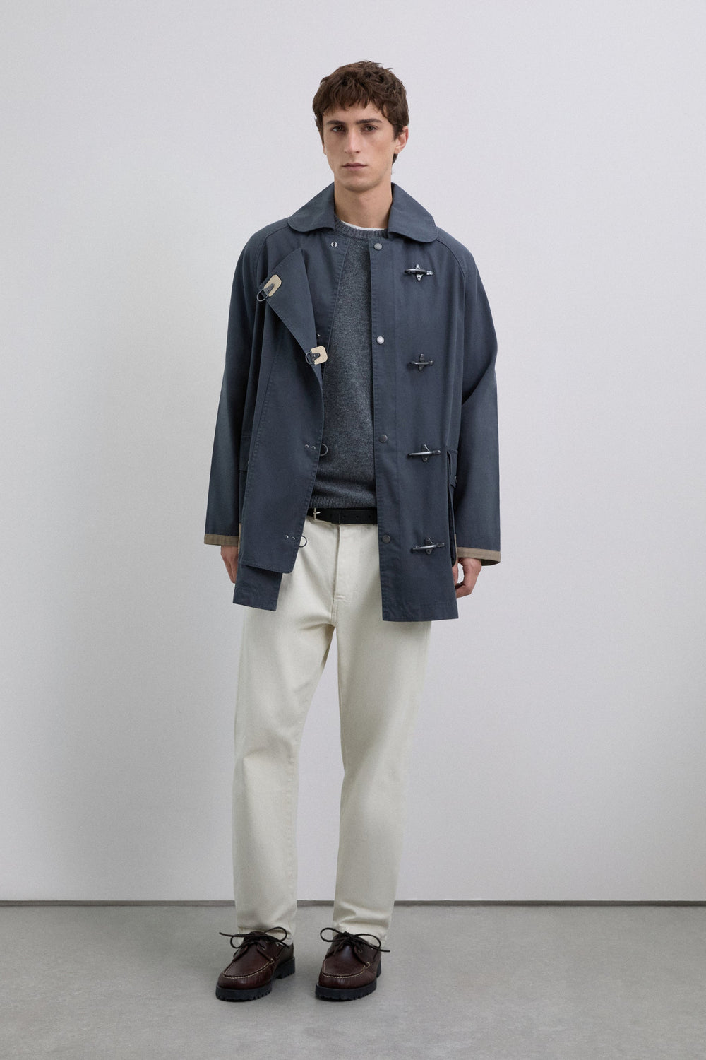 Jack gemaakt van 100% biologisch katoen. Zak met knoop aan de voorkant. Zijzakken met eyelets.. Oversized model. Afgeronde kraag in overhemdstijl. Raglanmouwen. Sluiting met drukknopen en toggles. Suède biezen aan de onderkant van de mouw en aan de onderste rand van de zak.