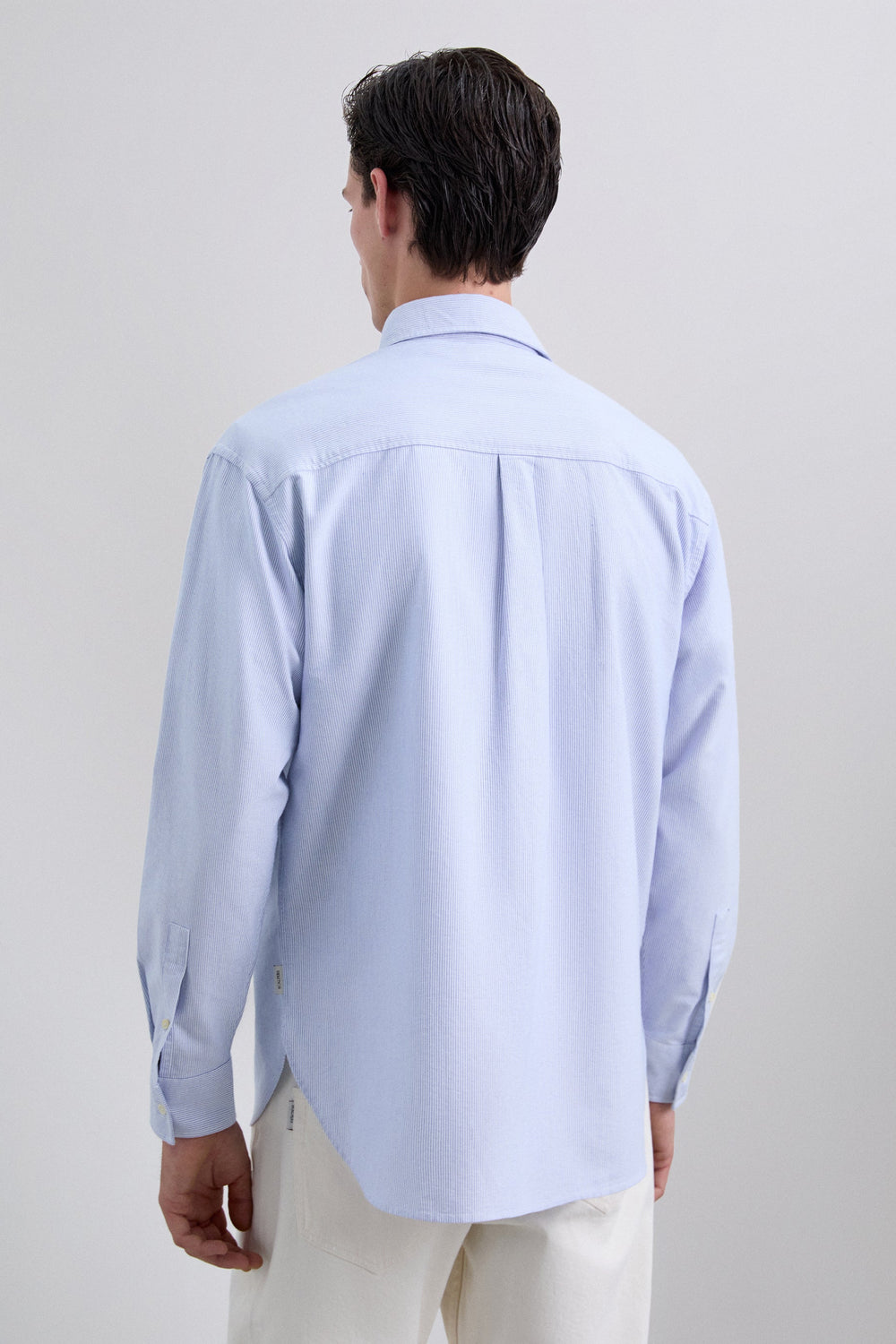 Overhemd gemaakt van 100% BCI-katoen. Gestreepte print. Borstzak. Lange mouw. Knoopsluiting aan de voorkant en manchetten. Geborduurde contrasterende doodskop onderaan de voorkant