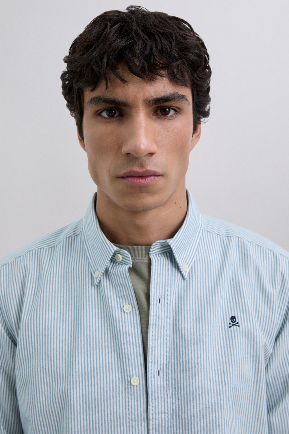 Oxford overhemd gemaakt van 100% BCI-katoen. Knoopsluiting. Gestreepte print. Lange mouwen met knoopsluiting. Geborduurde contrasterende doodskop op de borst.