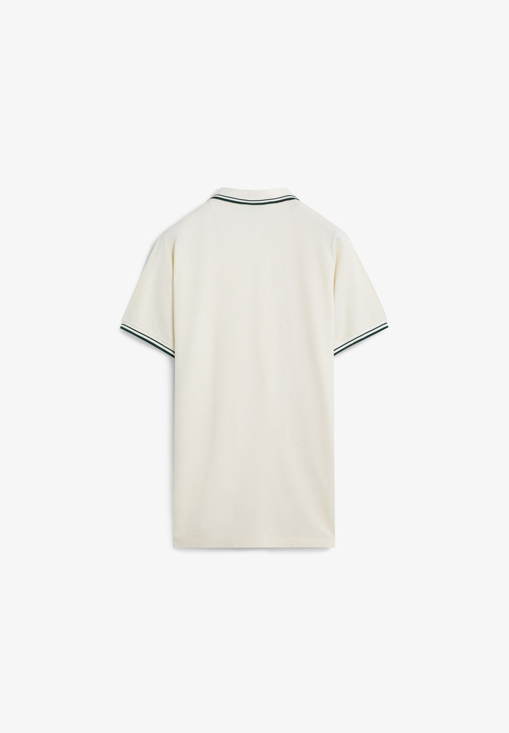 Polo gemaakt van 100% BCI-katoen. Korte mouw. Regular fit. Kraag en mouw met contrasterende strepen. Knoopbies met 2 knopen. Geborduurde contrasterende doodskop op de borst.