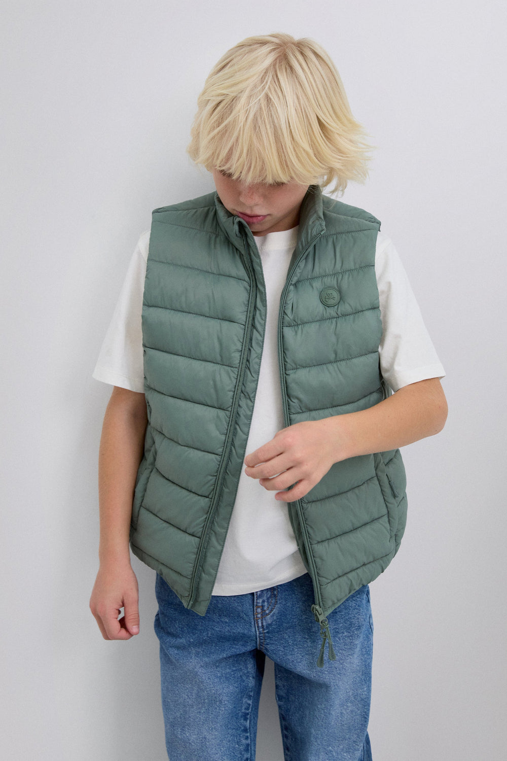 Gewatteerde bodywarmer gemaakt van gerecycled polyester. Regular fit. Hoge kraag. Ritssluiting en steekzakken.