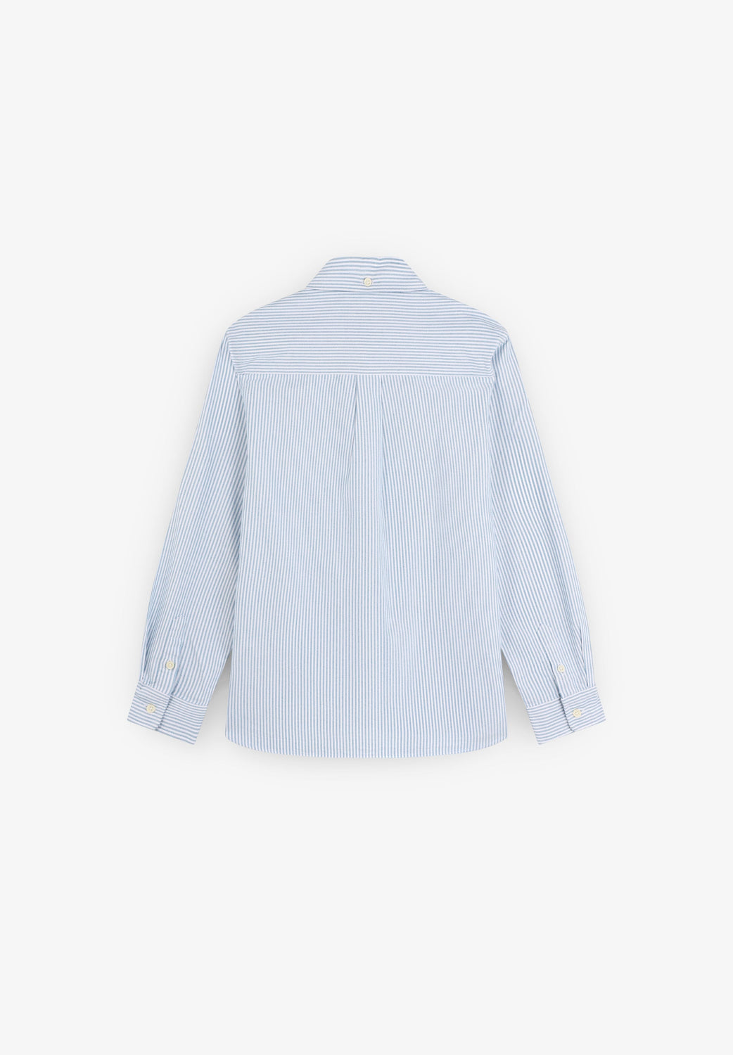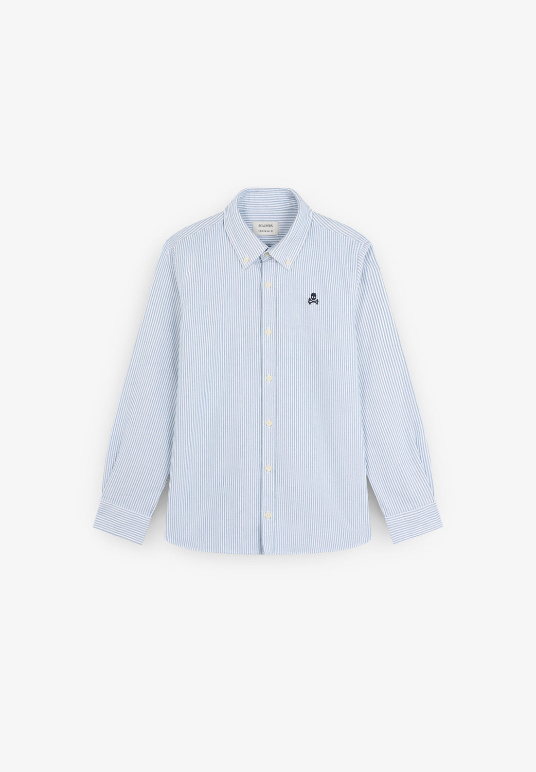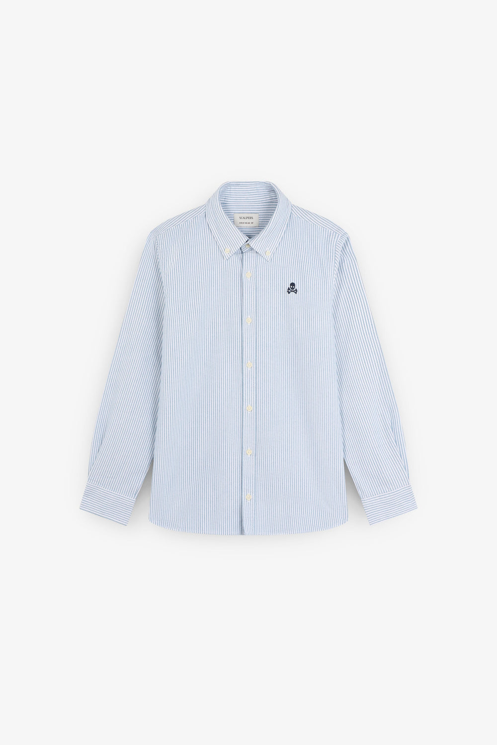 Gestreept overhemd van 100% BCI-katoen. Klassieke kraag, knoopsluiting, regular fit, contrasterend doodshoofd op de borst. Knopen op de manchet.
