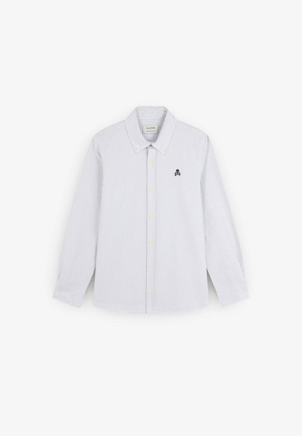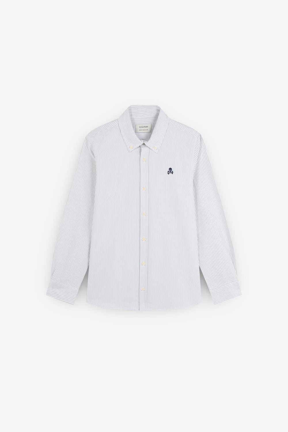 Gestreept overhemd van 100% BCI-katoen. Klassieke kraag, knoopsluiting, regular fit, contrasterend doodshoofd op de borst. Knopen op de manchet.