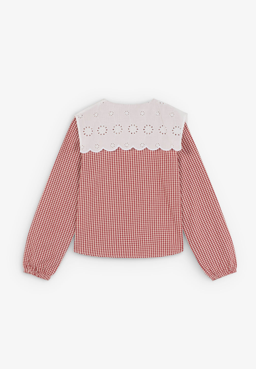 Camisa confeccionada 100% en algodón. Camisa estampado vichy. Detalle de cuello con volante. Cierre con botones frontales.