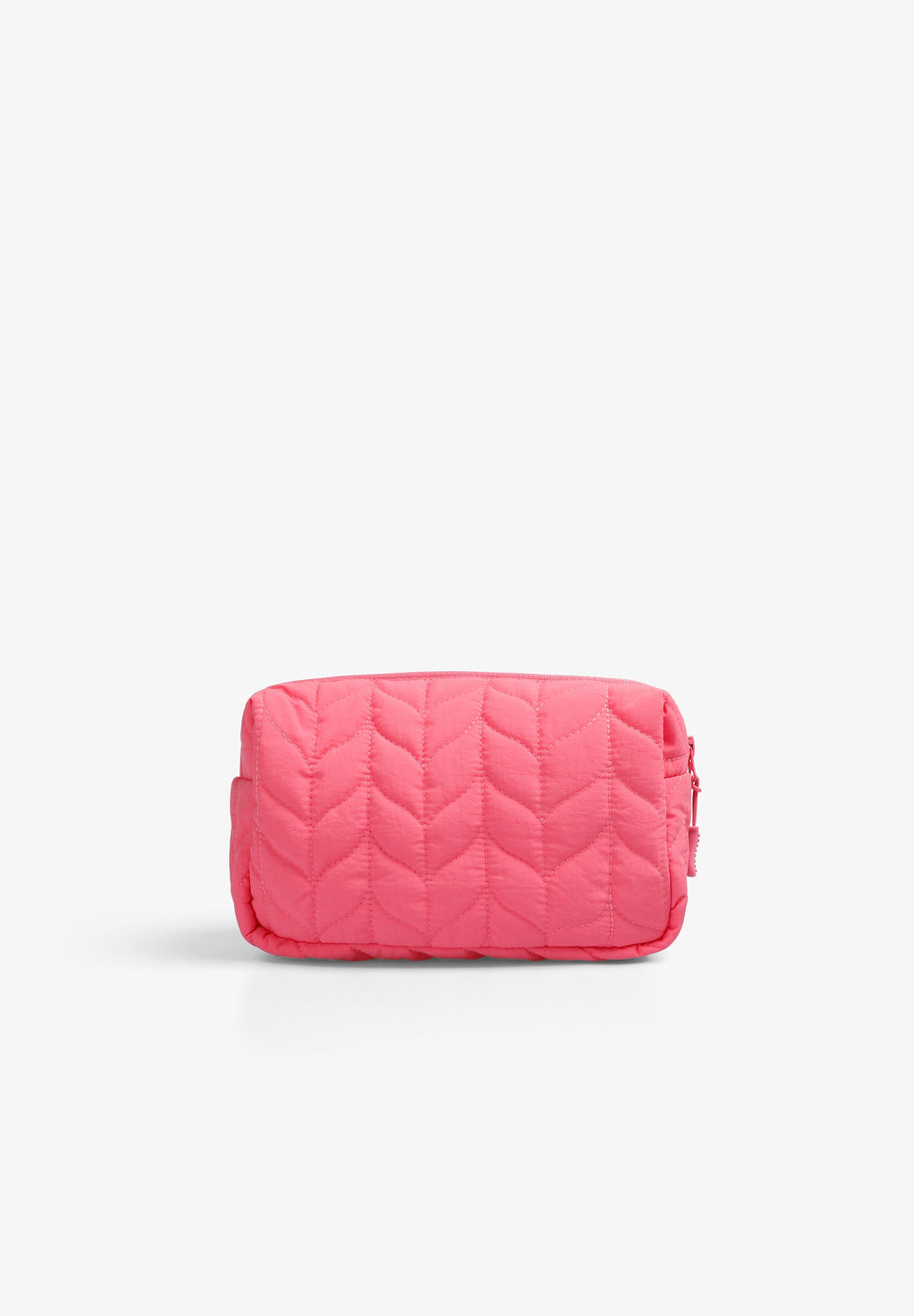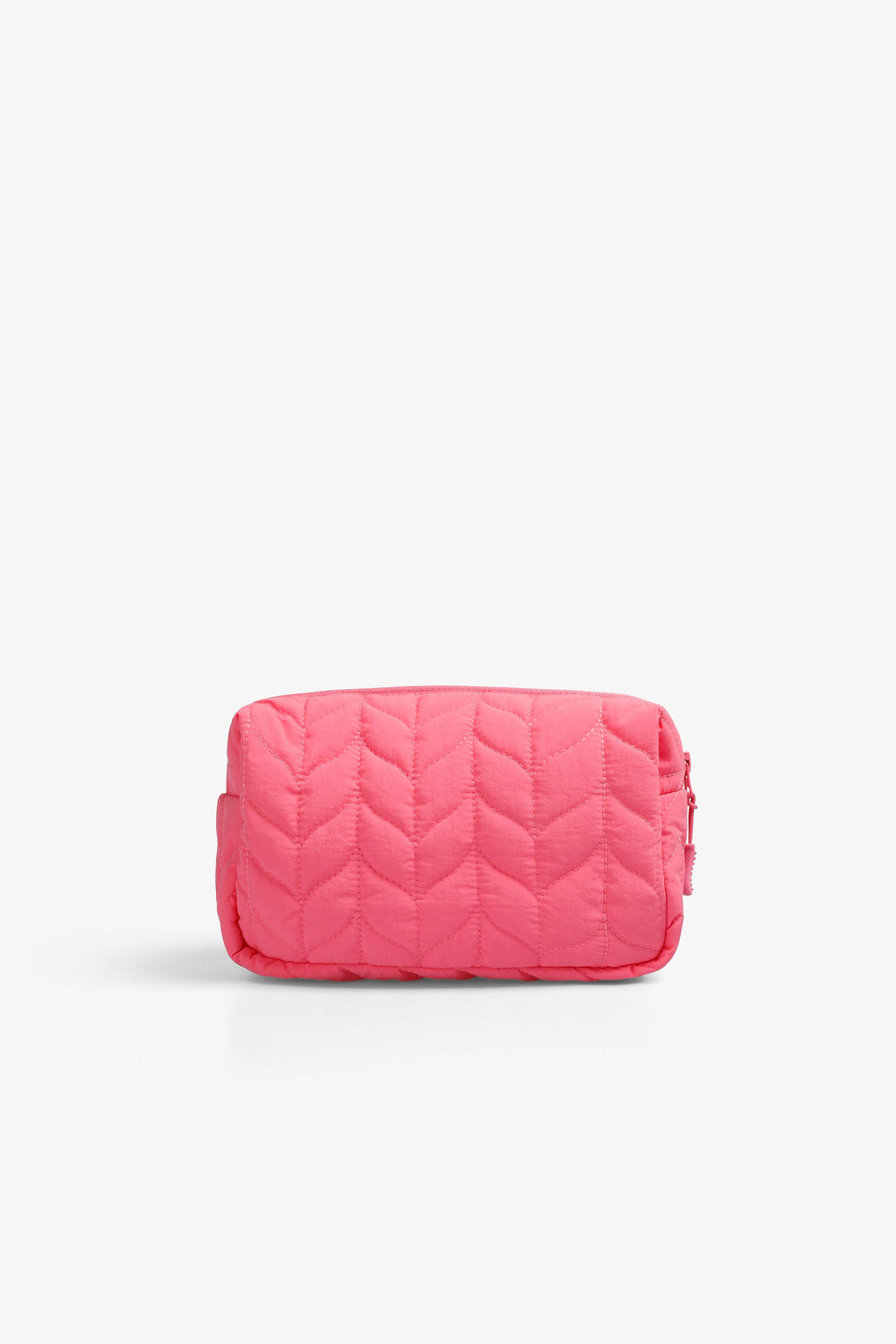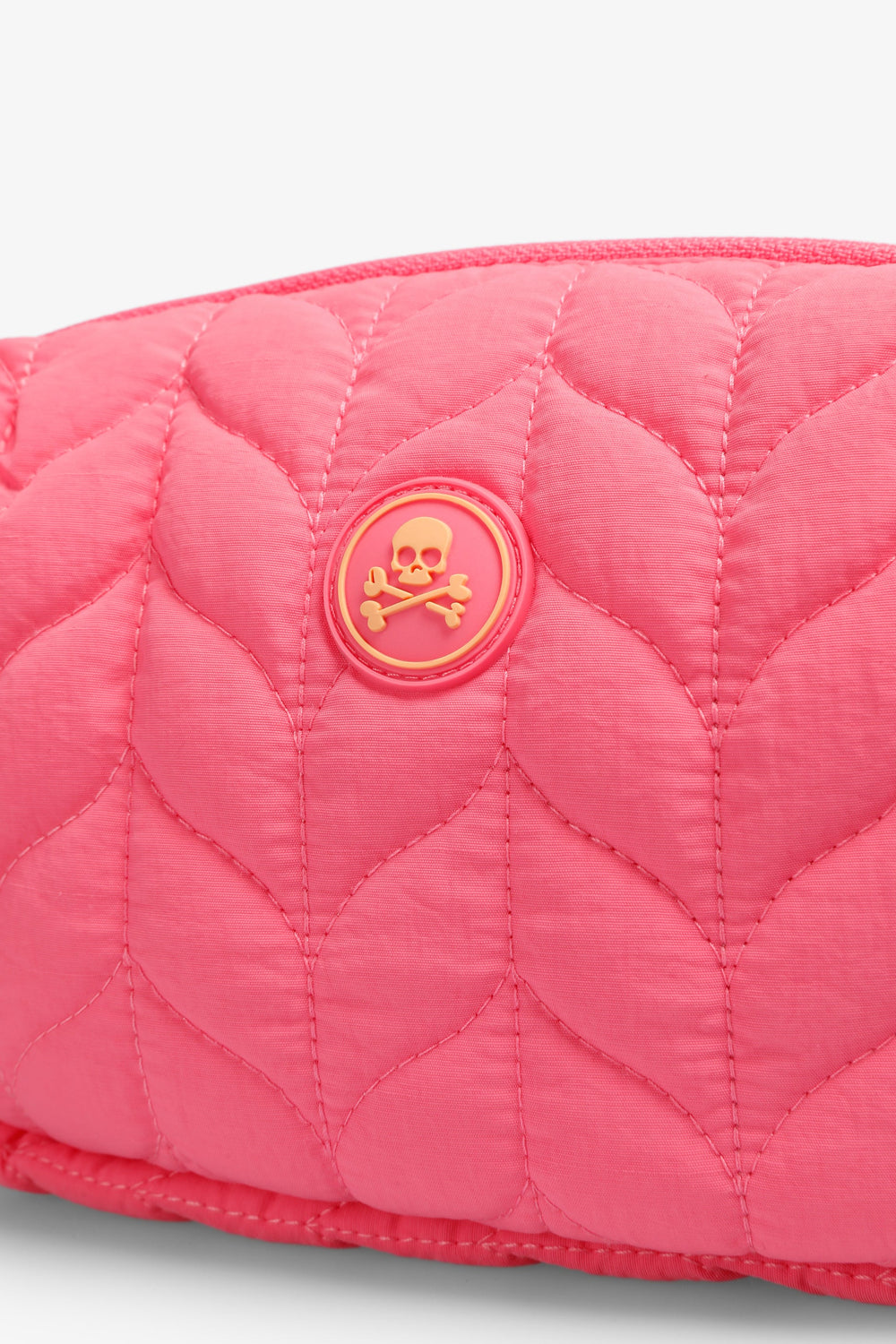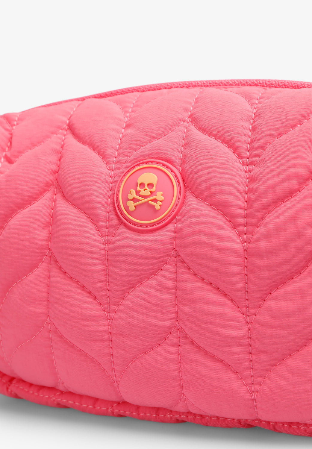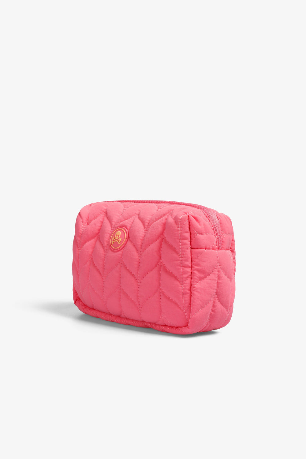 Synthetische toilettas. Rubberen doodskop-patch aan de voorkant. Ritssluiting.