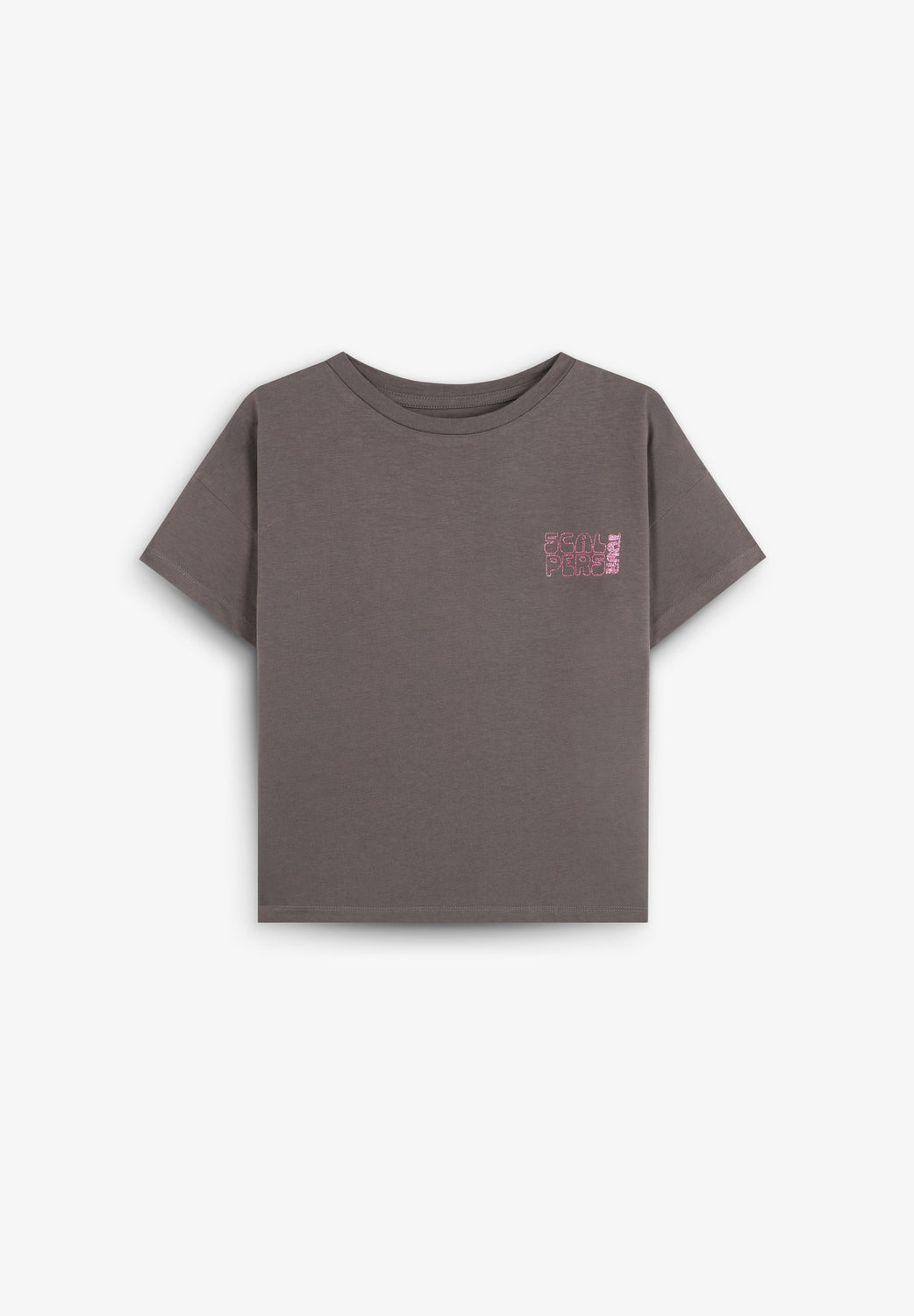 T-shirt gemaakt van 100% BCI-katoen. Ronde hals. Korte mouw. Ribboorden. Print op rug en borst.