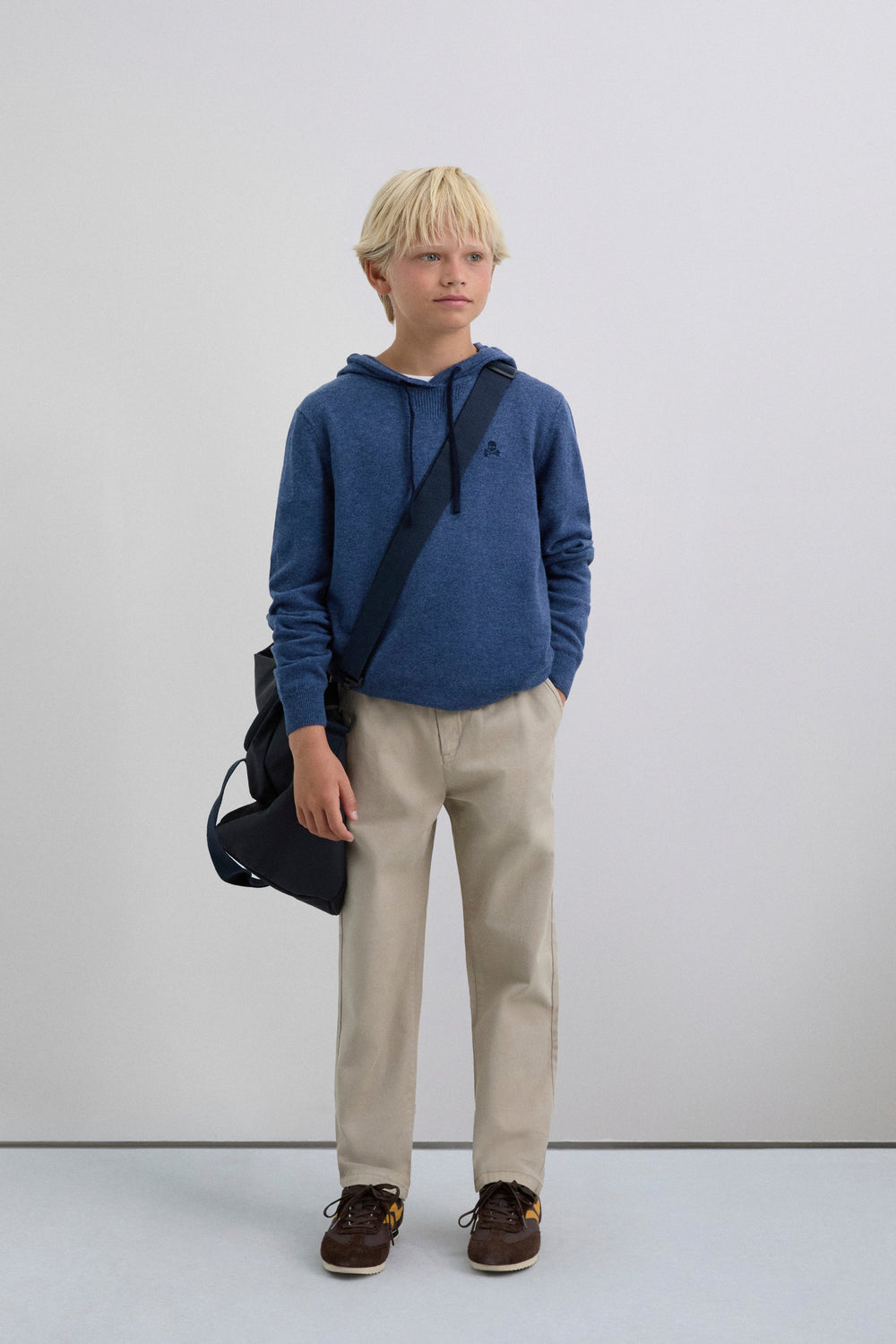 Trui met capuchon en contrasterende details. Gemaakt van een wol- en viscosemix Regular fit. Verstelbare kraag met capuchon. Lange mouw met contrasterende manchet. Geborduurd contrasterend doodshoofd.