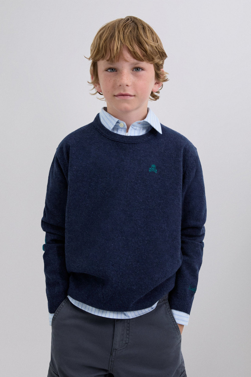 Trui gemaakt van wol- en polyamidemix. Regular fit. Ronde hals. Lange mouw. Geborduurd contrasterend doodshoofd. Ribboorden Contrasterend doodshoofd op de elleboog.