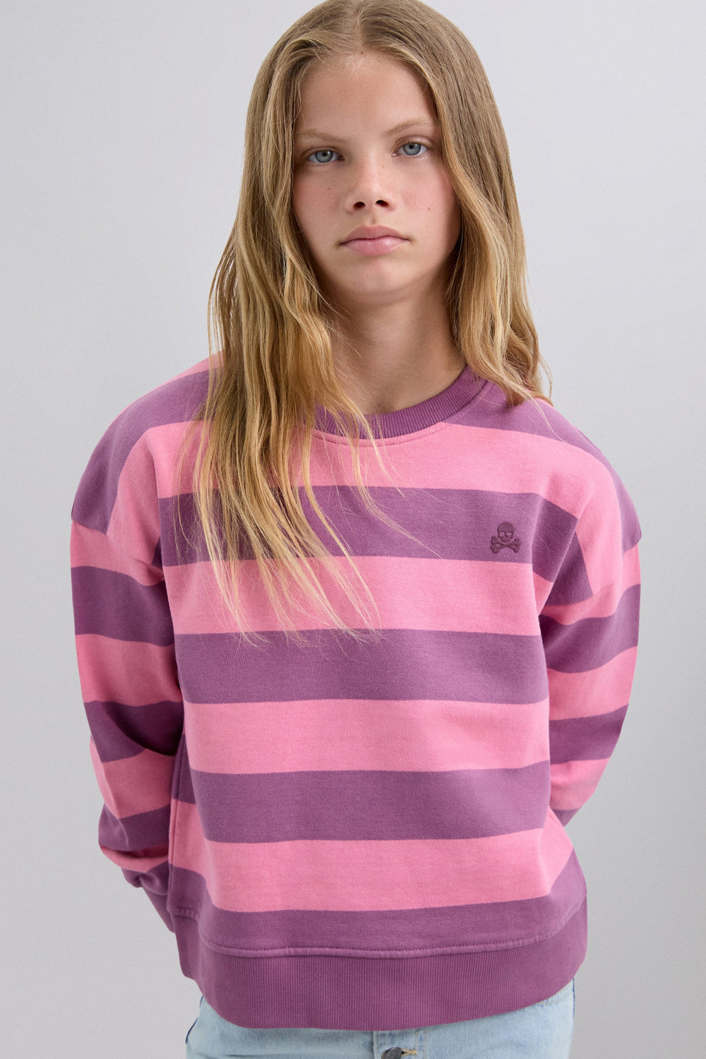 Gestreepte sweater van 100% BCI-katoen. Ronde hals. Geribde afwerking op kraag en manchetten. Doodshoofd-logo op de borst en label op de rug.