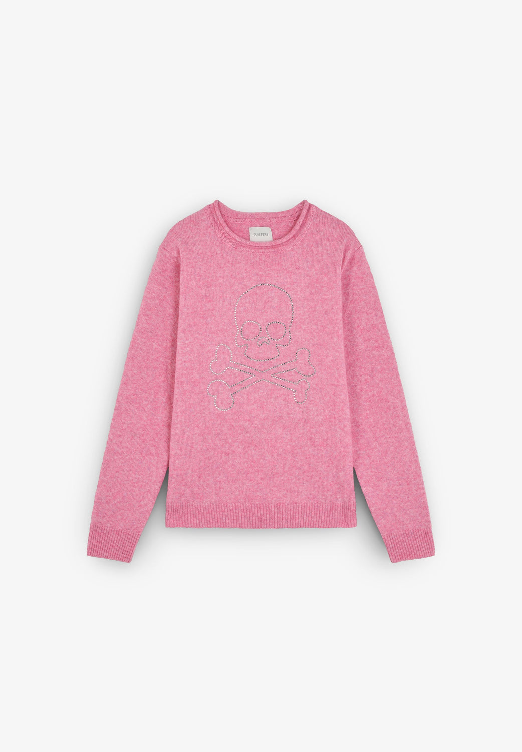 Trui van synthetische mix metstras-logoprint. Ronde hals. Lange mouw. Ribboorden