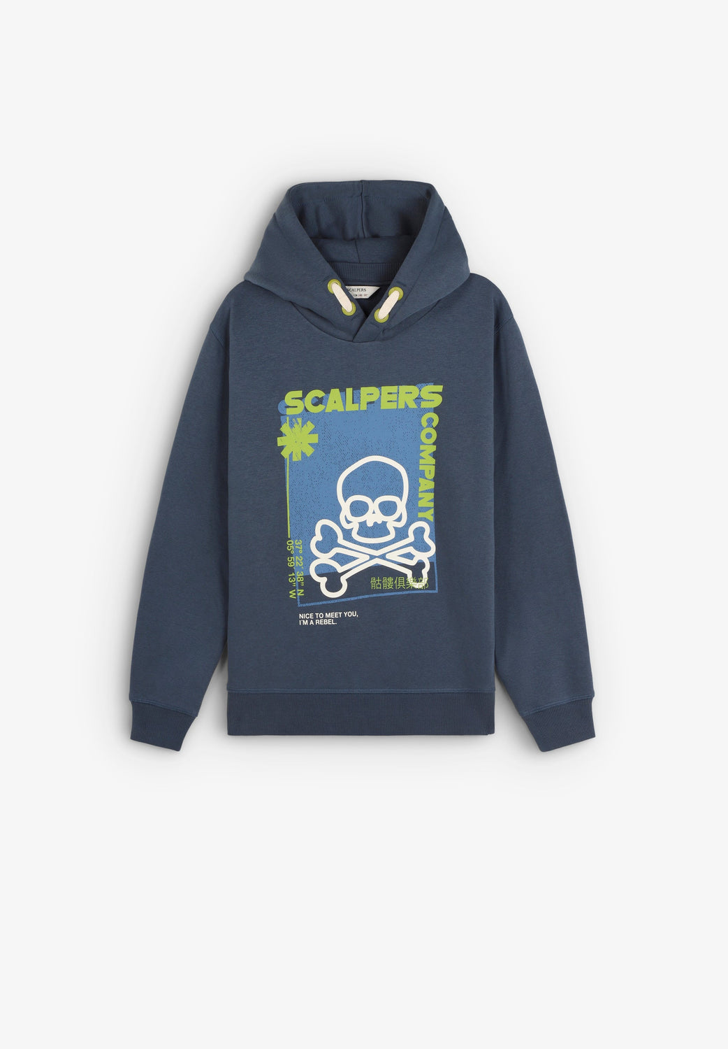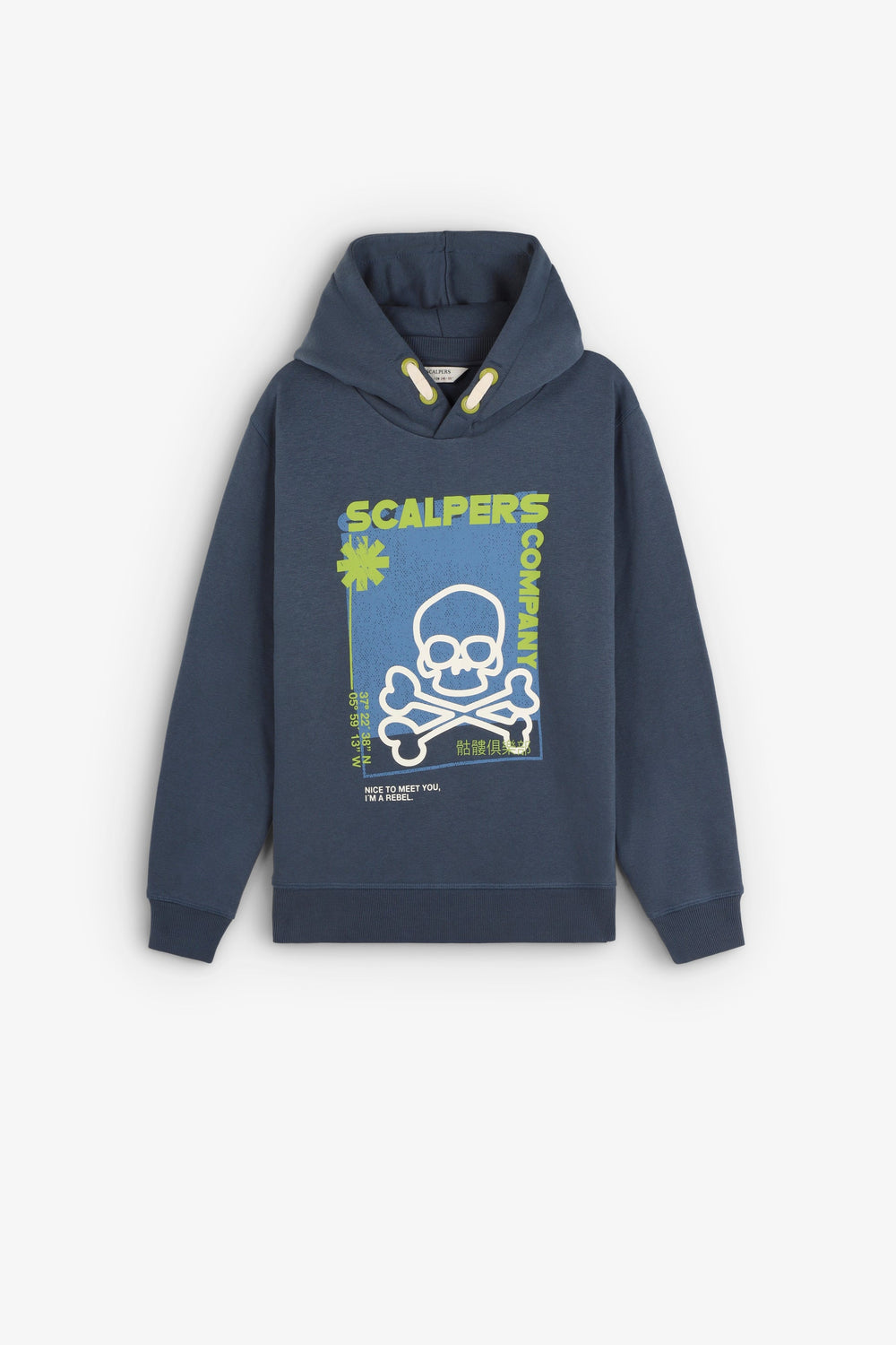 Sweater met verstelbare kraag. Regular fit. Lange mouw. Print op de voorkant met doodshoofd en logo. Ribboorden