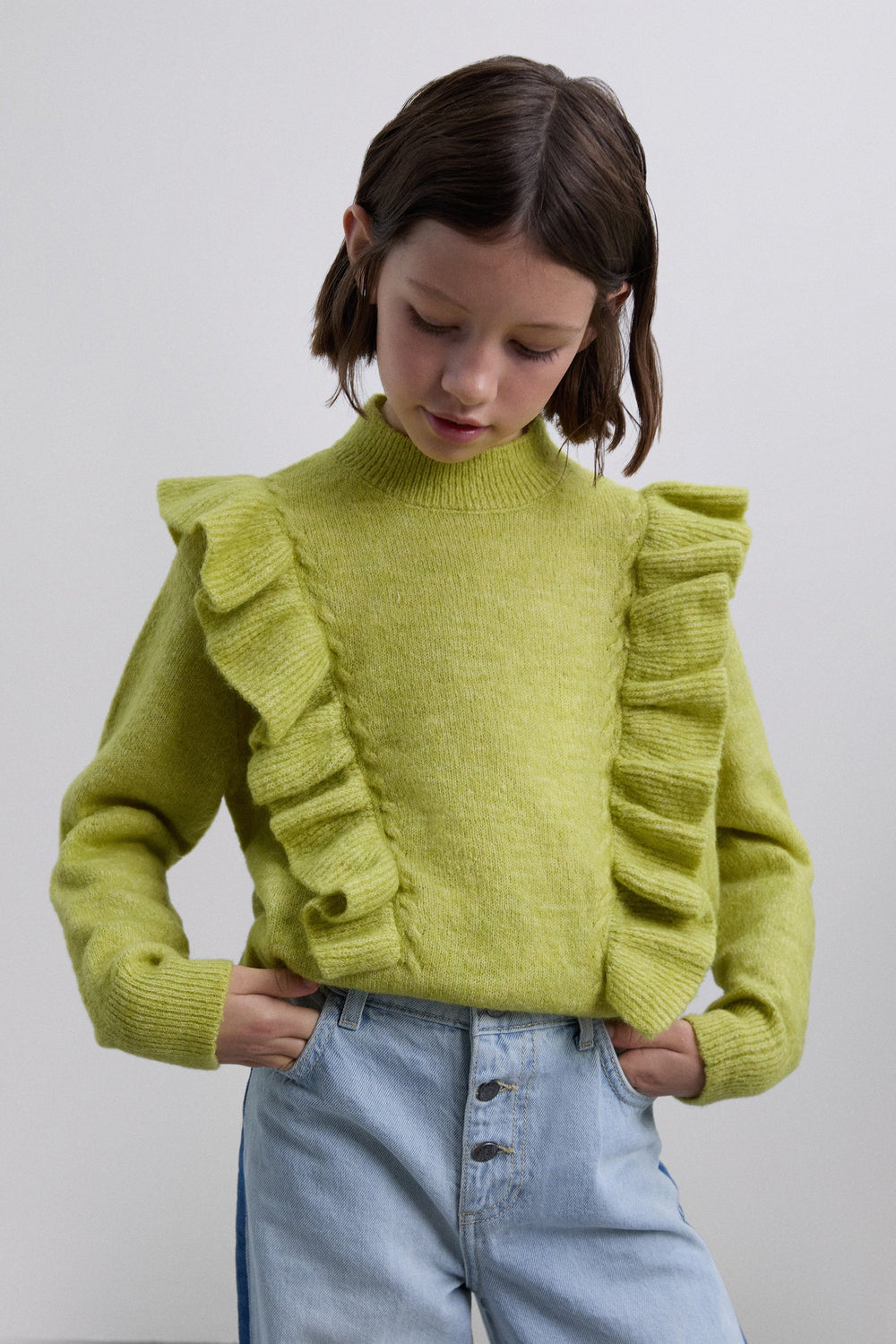 Trui gemaakt van synthetische mix. Lange mouw. Regular fit. Licht hoge kraag en geribde mouwen. Volants aan de voorkant.