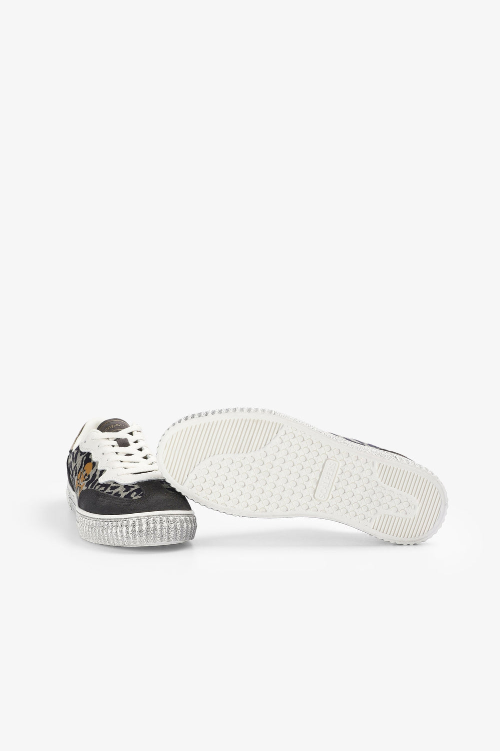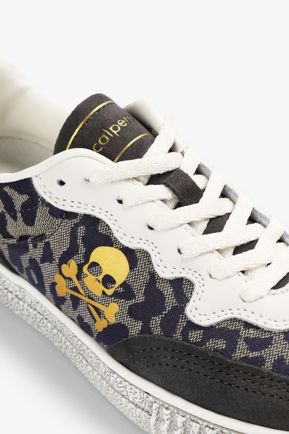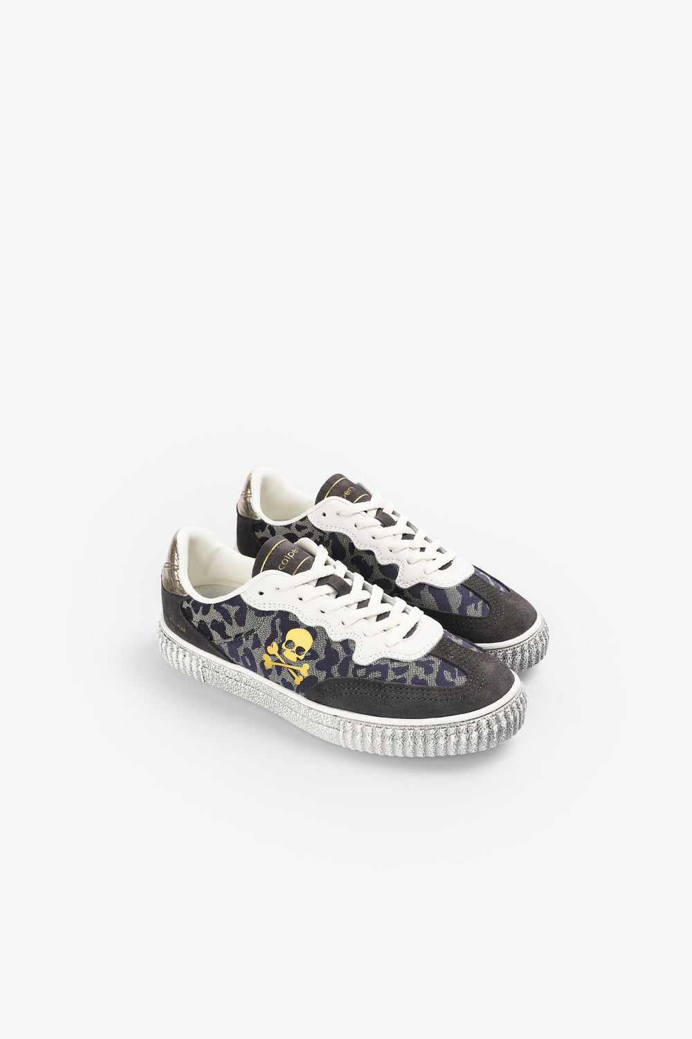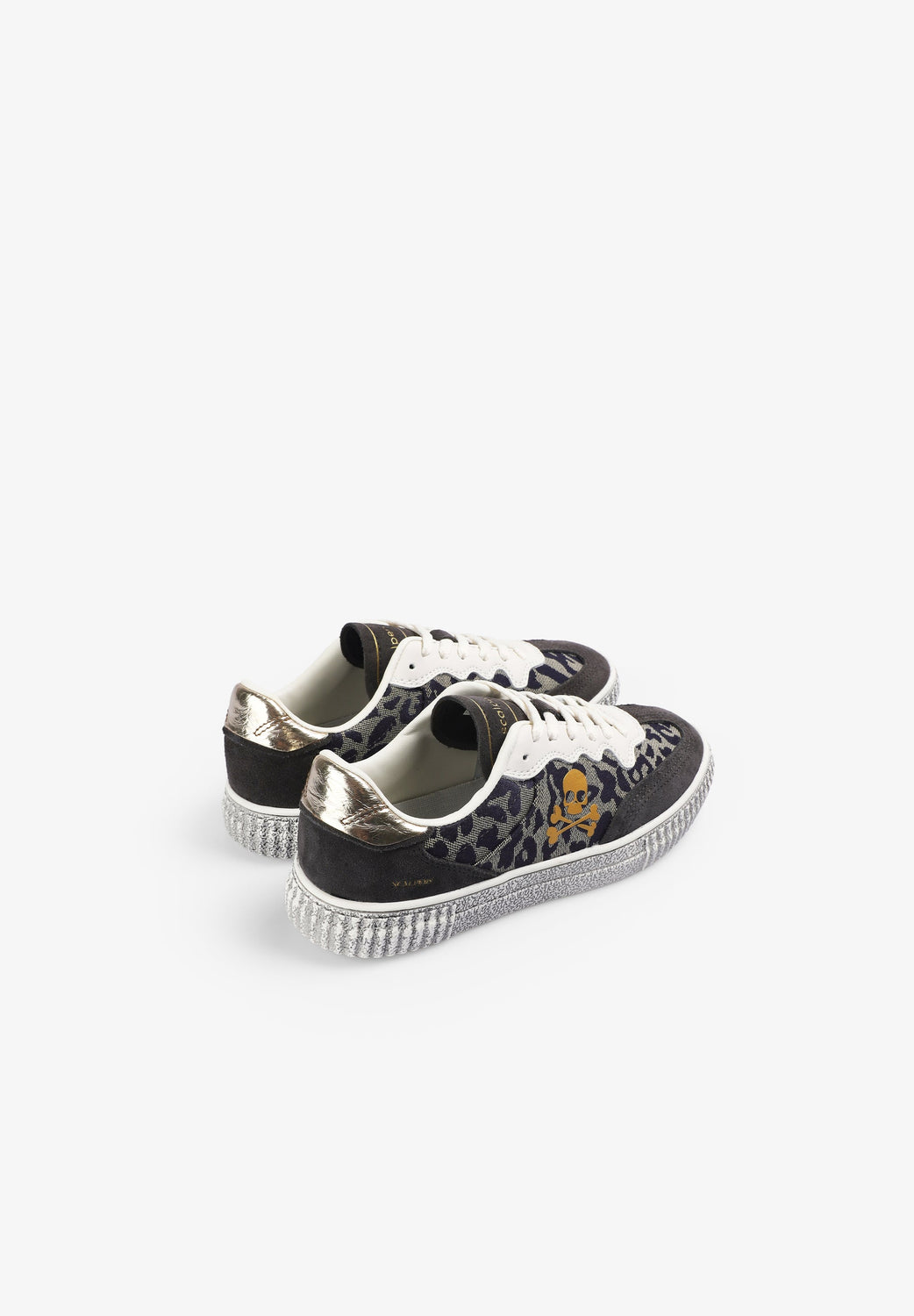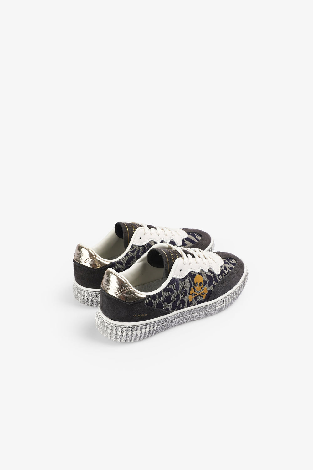 Lage sneakers vervaardigd van leer. Contrasterend doodshoofd aan de zijkant. Dierenprint. Vetersluiting. TPR-zool met versleten effect. Contrasterend metalen detail op de hiel en logo op de tong en onderkant.