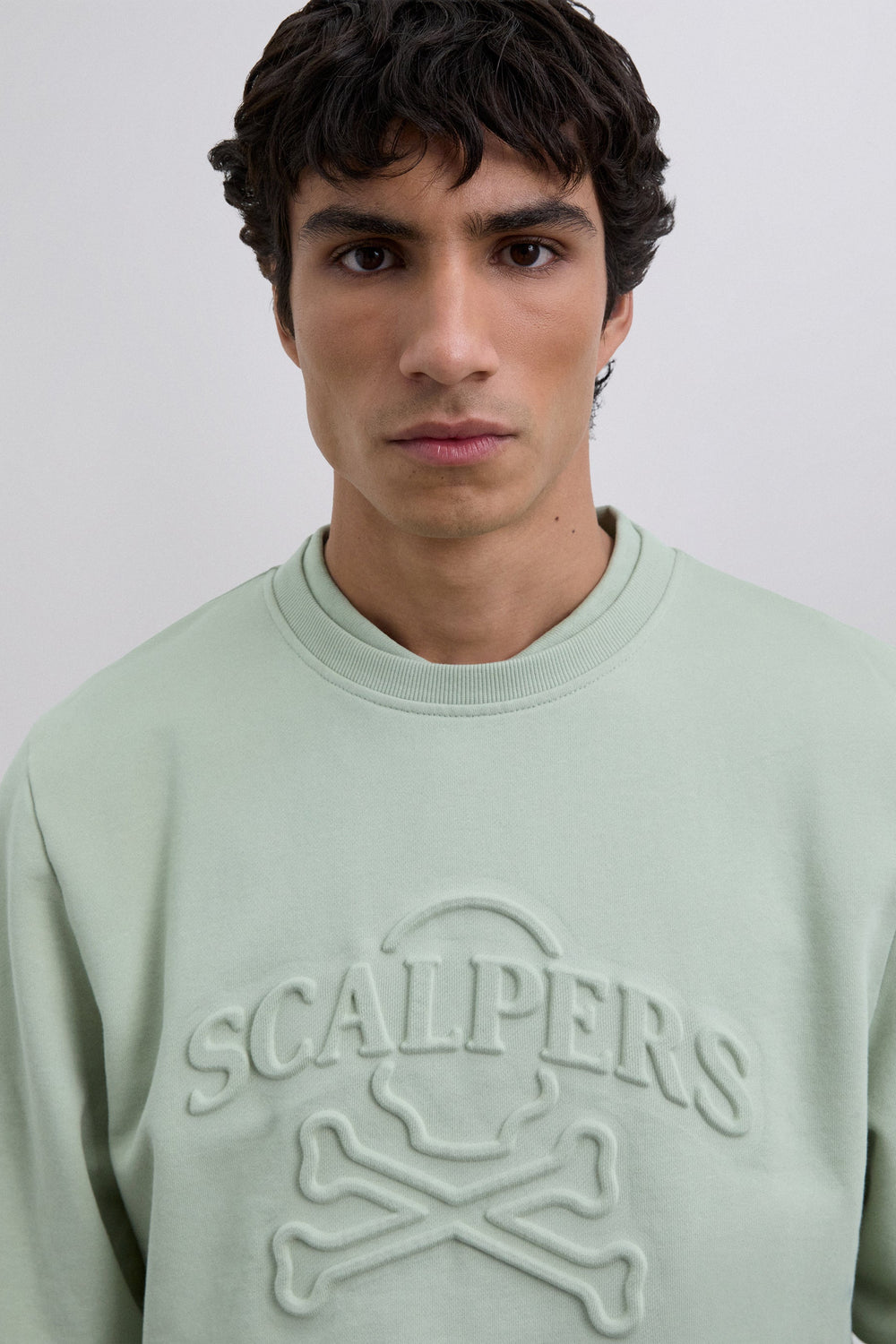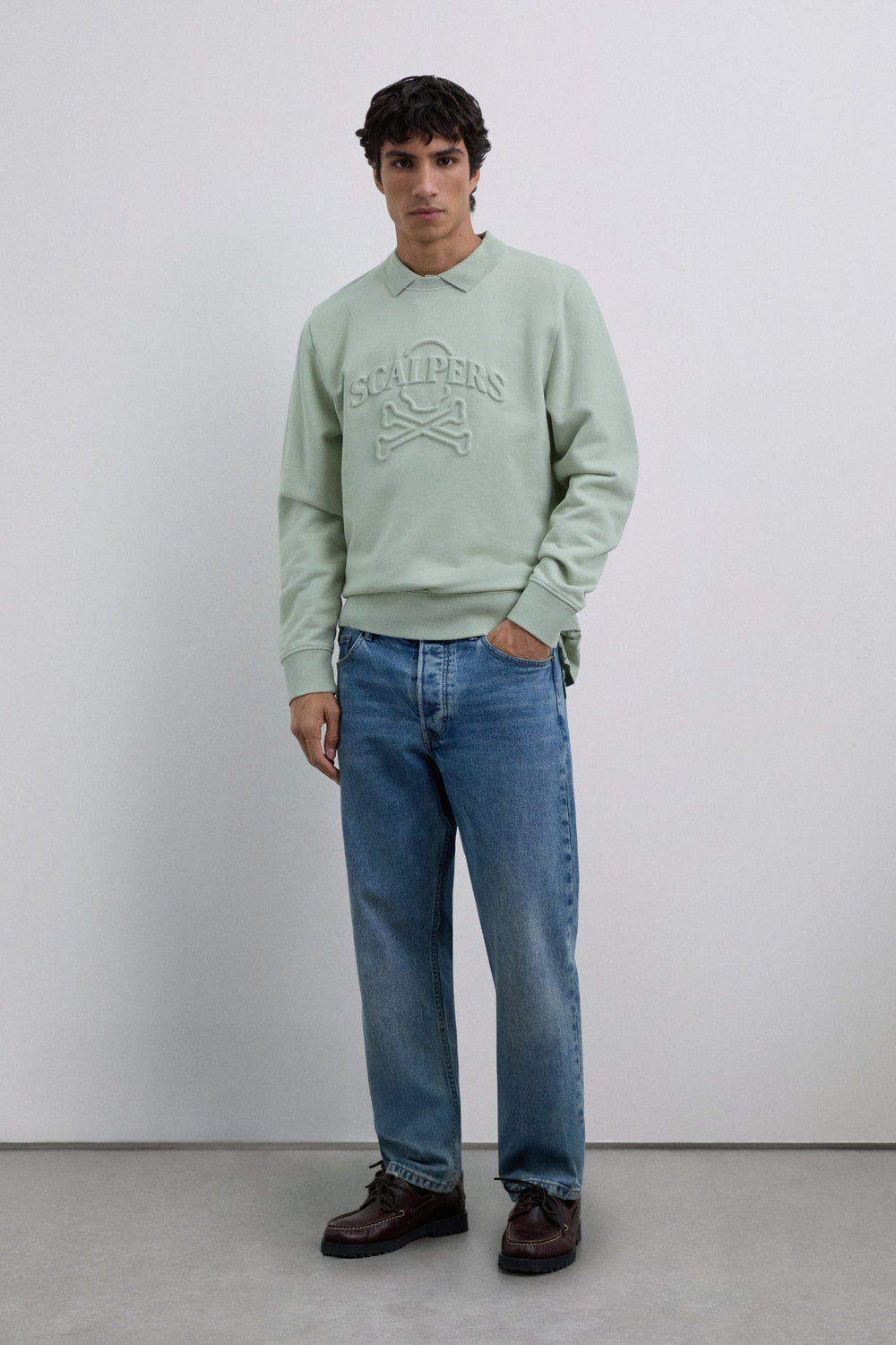 Sweater gemaakt van 100% BCI-katoen. Regular fit. Lange mouw. Ronde hals, geribde mouwen en tailleband. Logo en doodshoofd in reliëf op de voorkant.