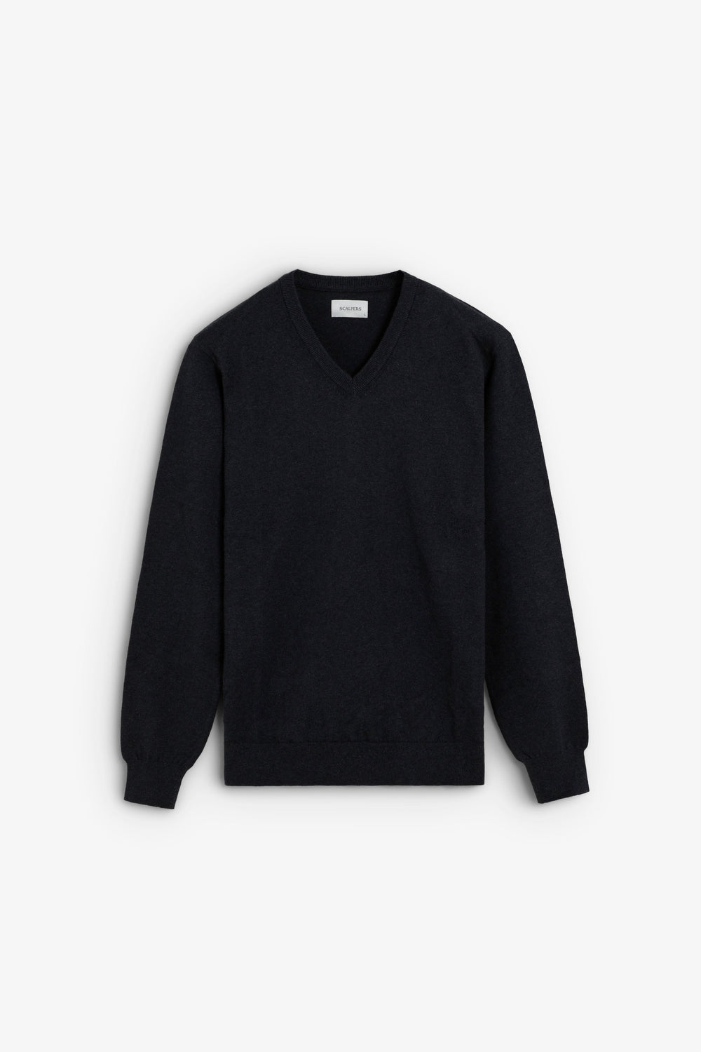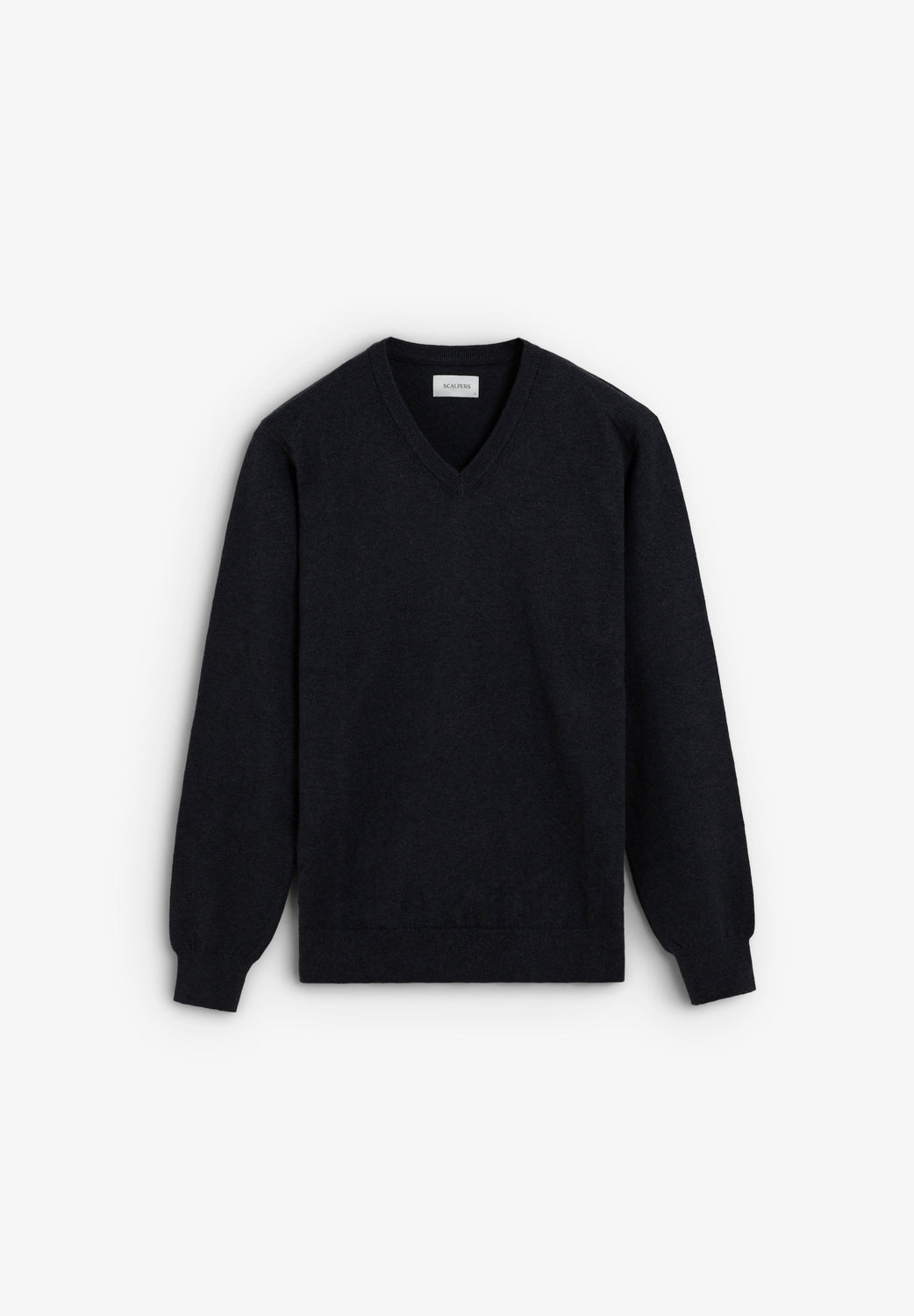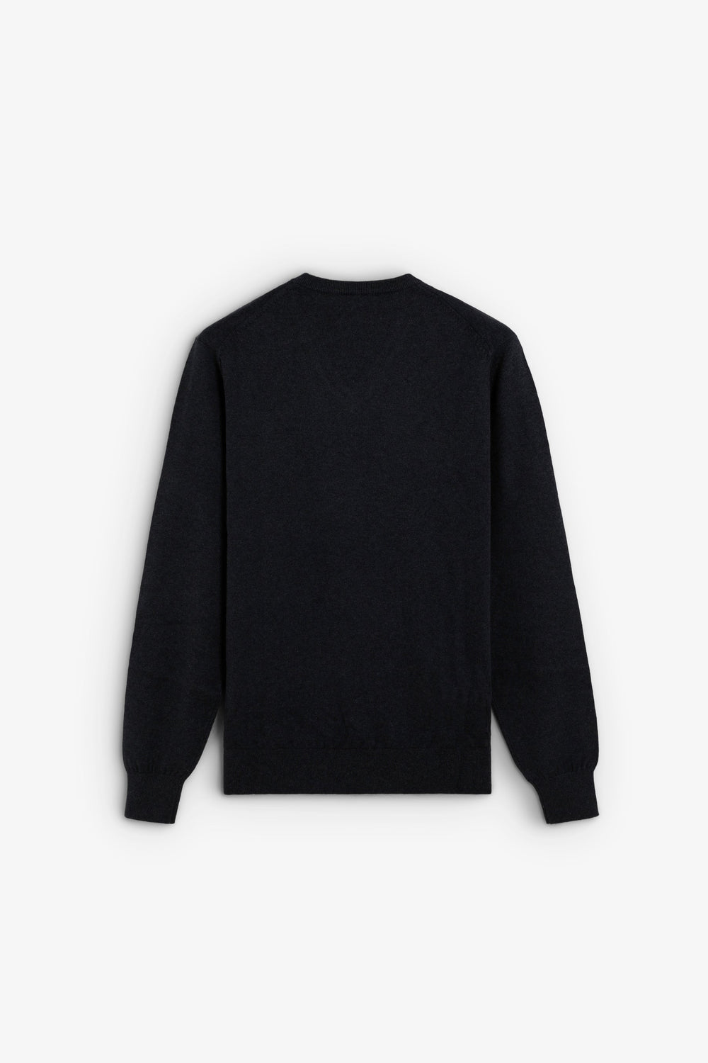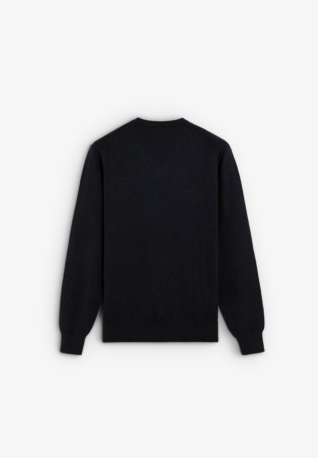 Trui gemaakt van katoen- en kasjmiermix. Lange mouw. V-hals. Ribboorden. Ton sur ton geborduurd logo op de borst.