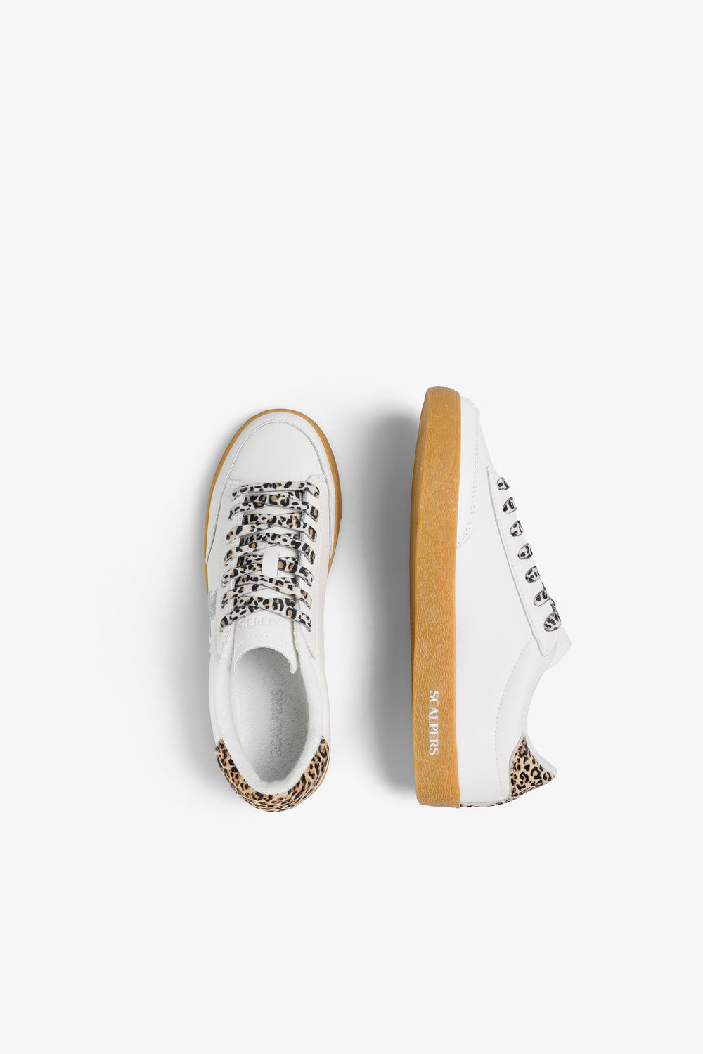 Sneakers met contrasterende geborduurde doodskop aan de zijkant. Hak en veters met dierenprint. Contrasterende rubberen zool. Contrasterend logo op de zijkant van de zool en ton sur ton logo op de tong.