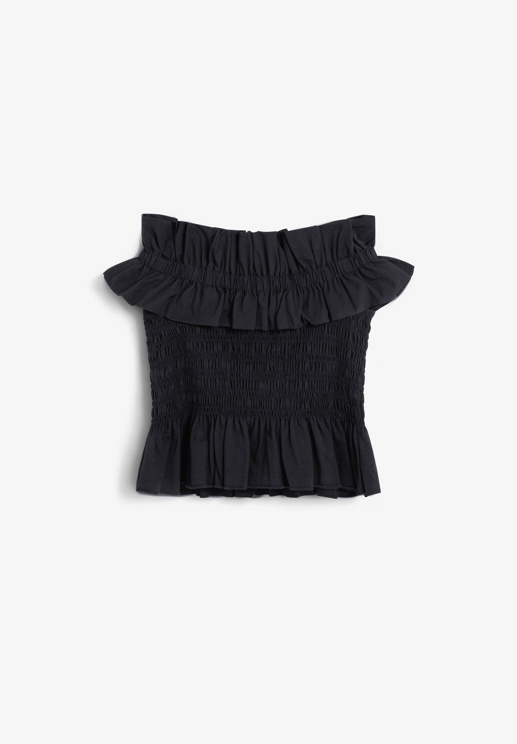 Top gemaakt van 100% BCI-katoen. Slim fit. Off the shoulder met plooien en ruches. Body met honingraatmotief.