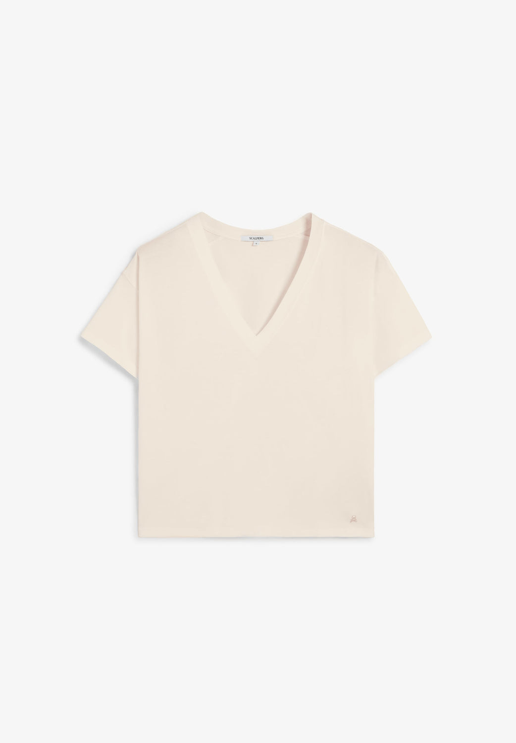 Basic T-shirt gemaakt van 100% biologisch katoen. Regular Fit, V-hals en korte mouw. Geborduurd logo vooraan op de onderkant.